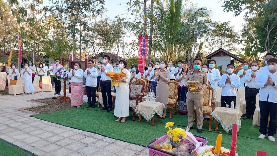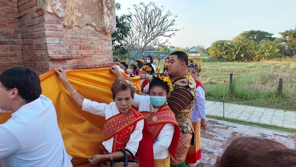 คณะศรัทธาตำบลทุ่งกวาว สืบสานงานประเพณีไหว้พระธาตุเจดีย์โบราณสถานที่เก่าแก่ของหมู่บ้าน