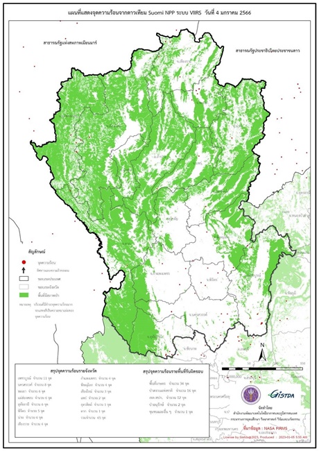 Hotspot เกิดขึ้นจำนวน 13 จุด (เชียงราย 4 จุด เชียงใหม่ 3 จุด แม่ฮ่องสอน 6 จุด และลำพูน 0 จุด)