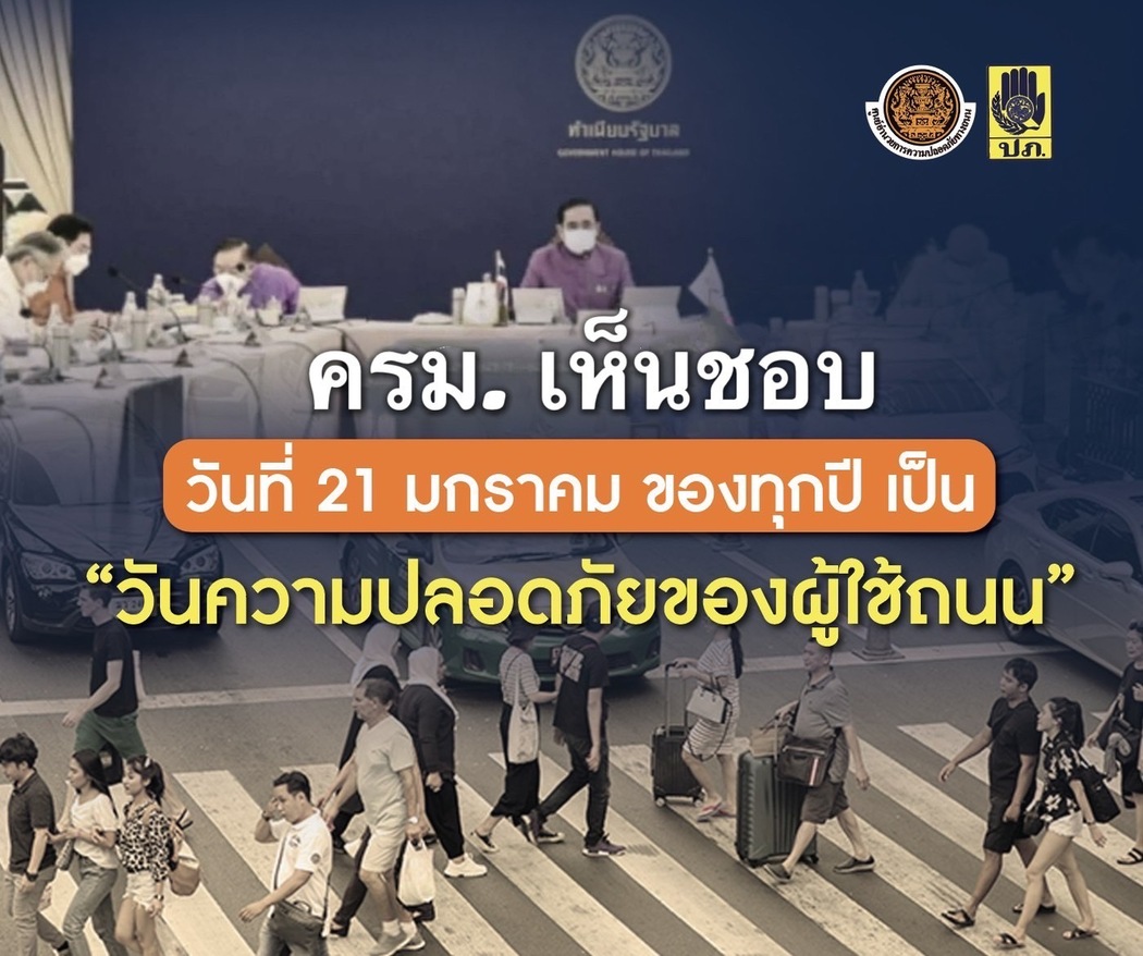 ครม. กำหนดให้วันที่ 21 มกราคมของทุกปี เป็น “วันความปลอดภัยของผู้ใช้ถนน” มุ่งสร้างการรับรู้และปลูกจิตสำนึกด้านความปลอดภัยทางถนน