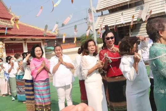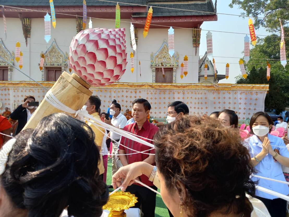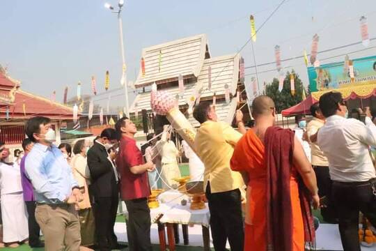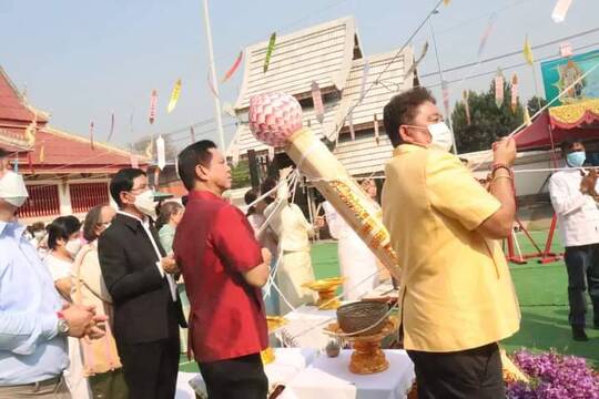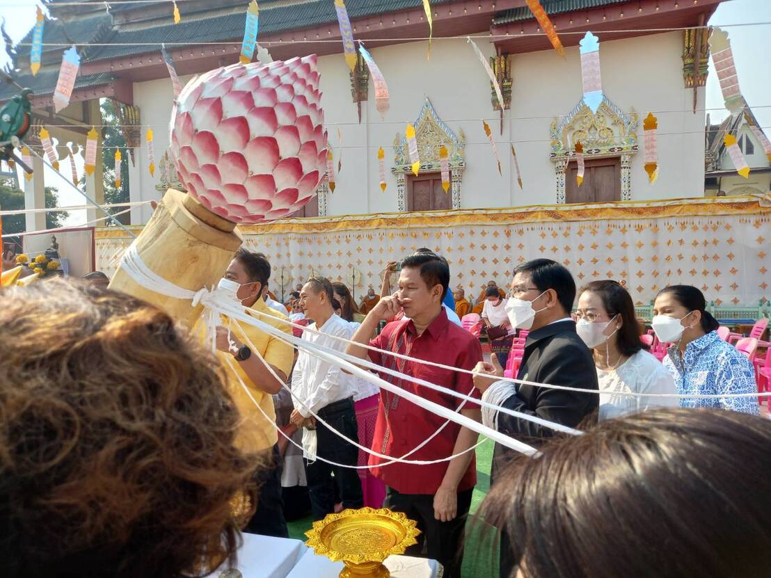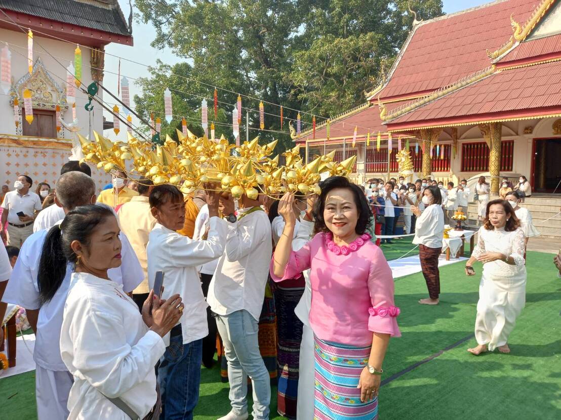 พุทธศาสนิกชนแน่นวัดปงท่าข้ามร่วมประกอบพิธีขลังและศักดิ์สิทธิ์ยกยอดฉัตรเจดีย์ศรีม่วงก้ำ 9 ชั้น