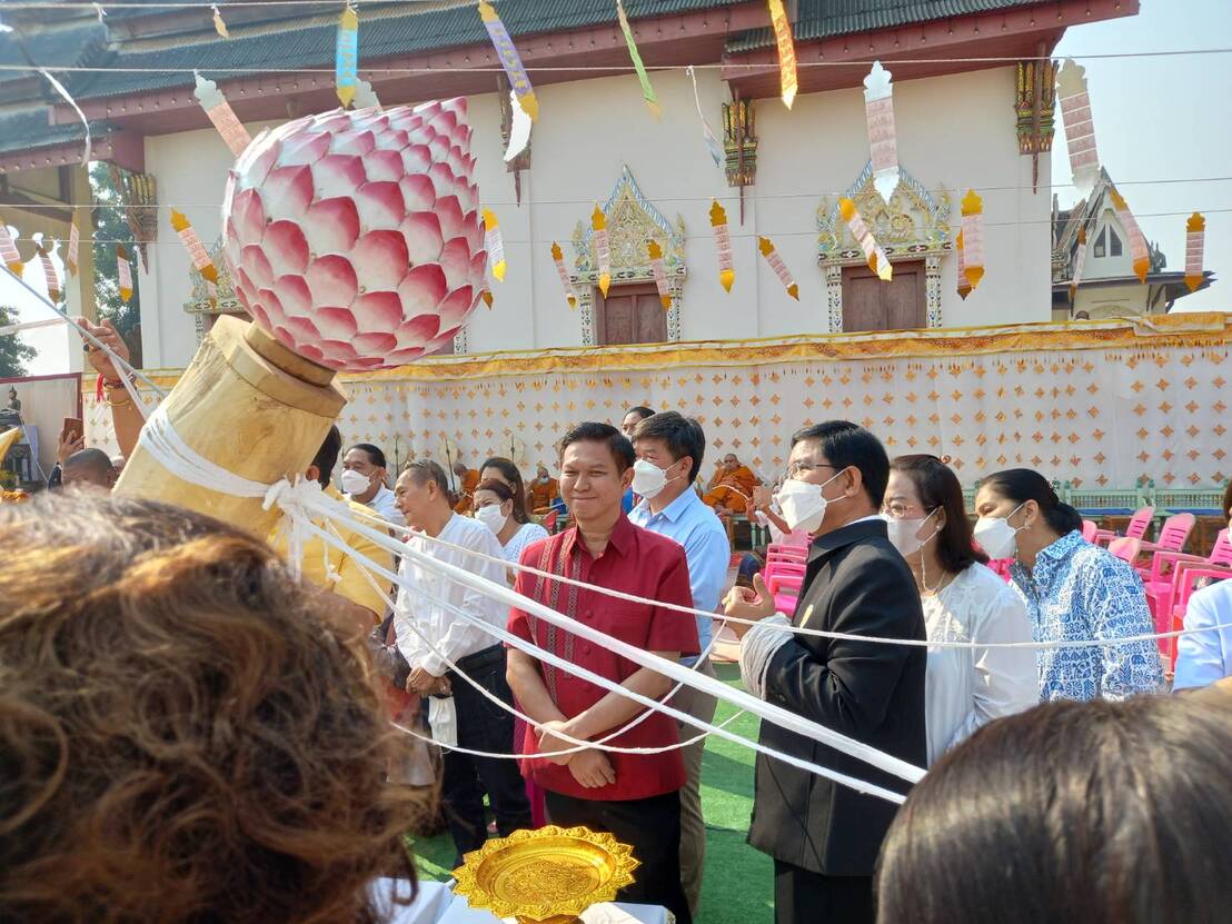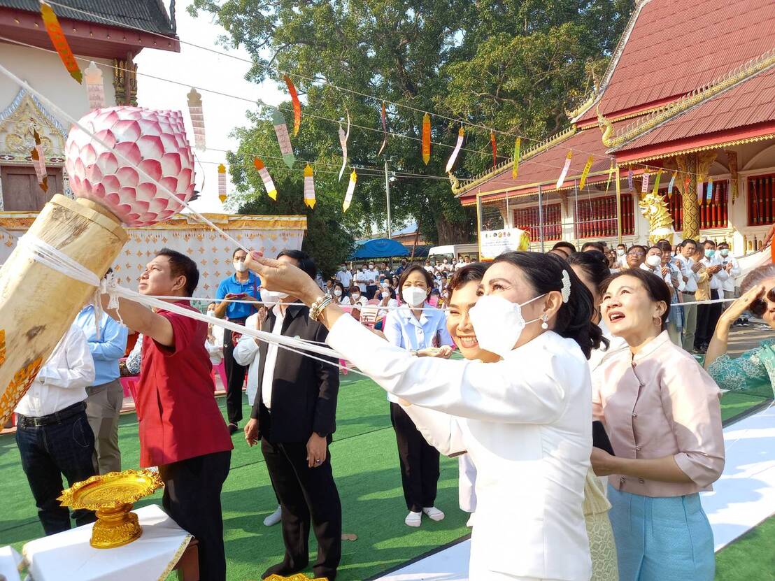 เมื่อเช้าวันที่ 9 ก.พ.66 เวลา 09.18 น. ดร.วรวัจน์ เอื้ออภิญญกุล อดีต รมว.กระทรวงวัฒนธรรม เป็นประธานในพิธียกยอดฉัตรเจดีย์ศรีม่วงก้ำ วัดปงท่าข้าม ต.บ้านปง อ.สูงเม่น จ.แพร่ นายปฏิคม วงศ์สุวรรณ กรรมการบอร์ด กฟภ. นายนคร สายยืด นายอำเภอสูงเม่น และ นายศิวัช ฟูบิน นายอำเภอลับแล(อดีตนายอำเภอสูงเม่น) และคณะศรัทธาร่วมพิธีจำนวนมาก