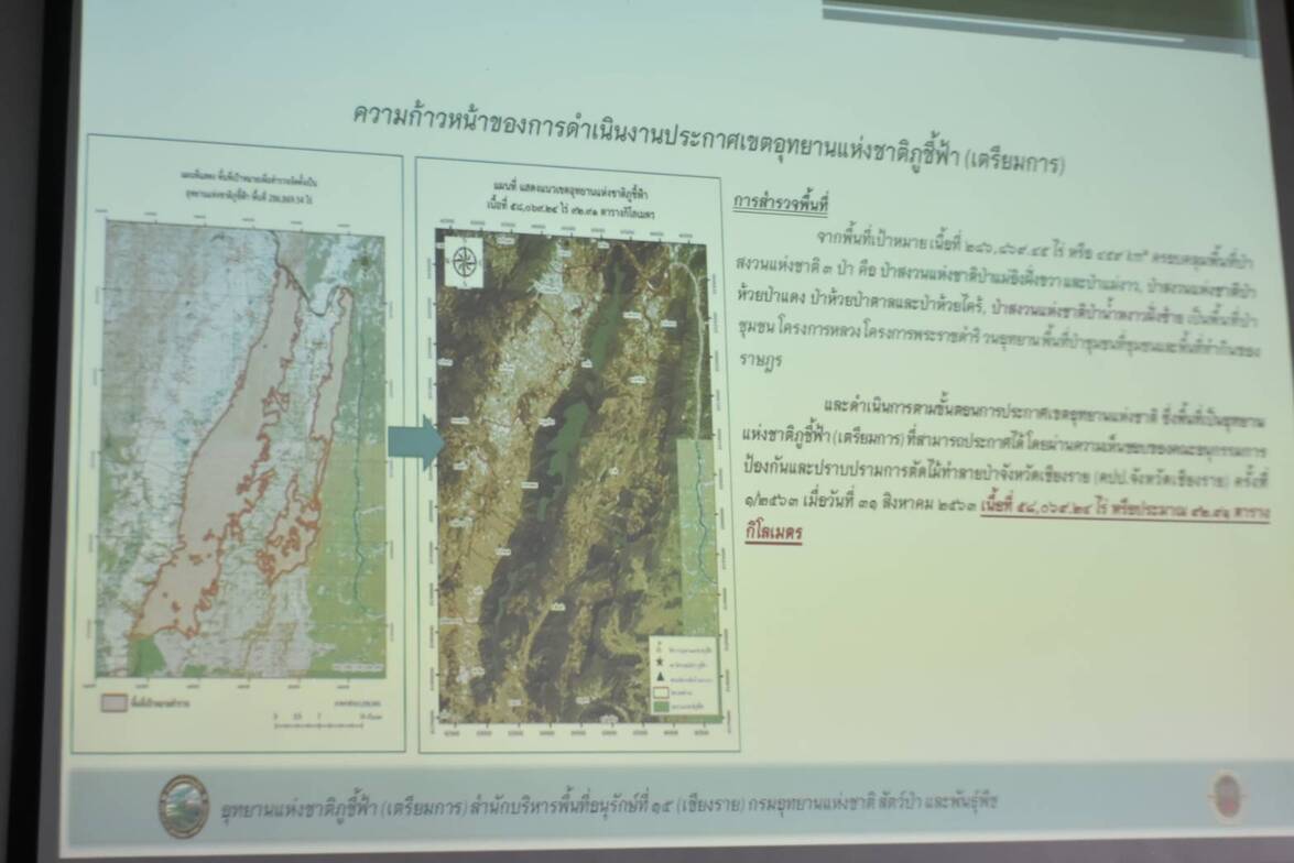 ในส่วนของความคืบหน้าในการยกฐานะ อช.ภูชี้ฟ้า(เตรียมการ) ขึ้นเป็น อช.ภูชี้ฟ้า ซึ่งตามกระบวนการยกฐานะทั้ง 11 ขั้นตอน ปัจจุบันกำลังดำเนินการอยู่ในขั้นตอนที่ 4 ได้แก่ การรับฟังความคิดเห็นของประชาชนในพื้นที่ที่ได้รับผลกระทบ