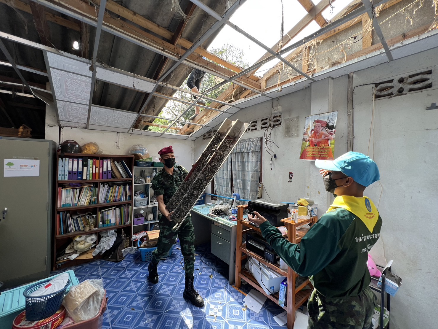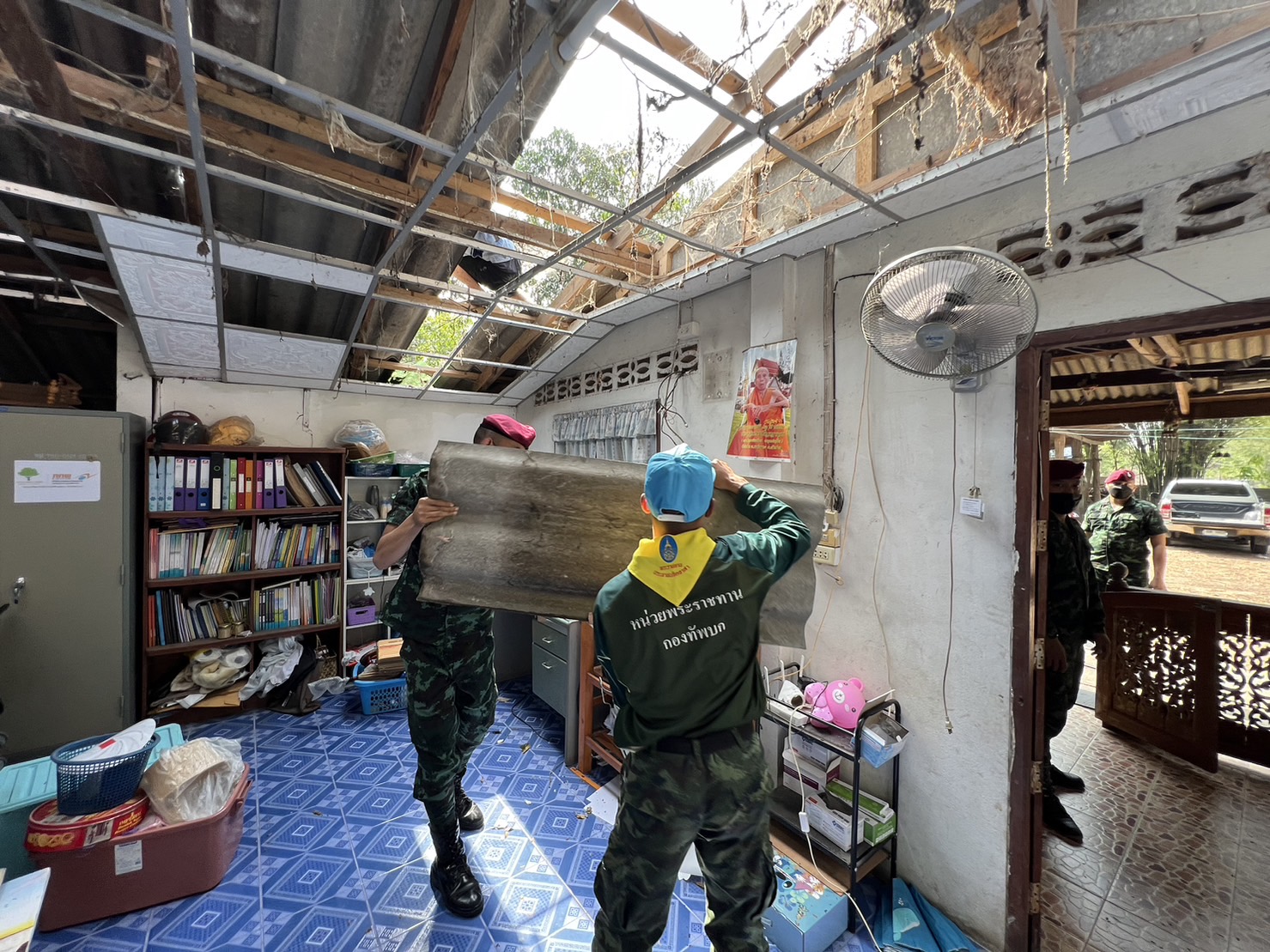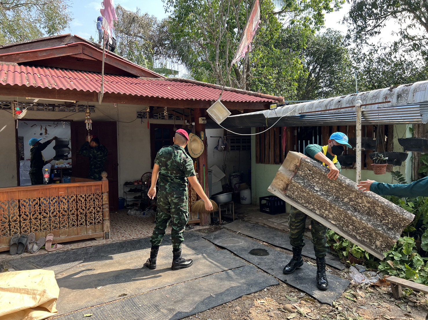 กองร้อยฝึกรบพิเศษที่ 3 จัดกำลังพลช่วยเหลือผู้ได้รับผลกระทบจากฝนตกหนัก และลมกระโชกแรงในพื้นที่ บ้านหัวฝาย ต.บ้านดง อ.แม่เมาะ จ.ลำปาง