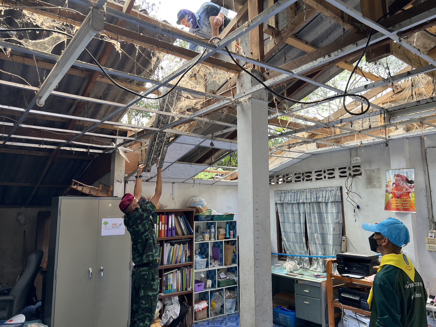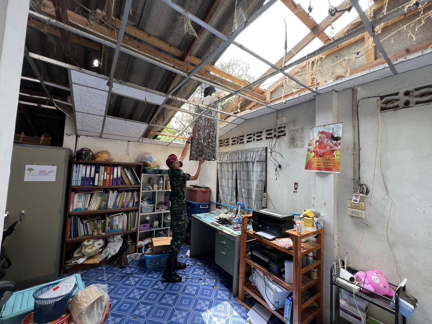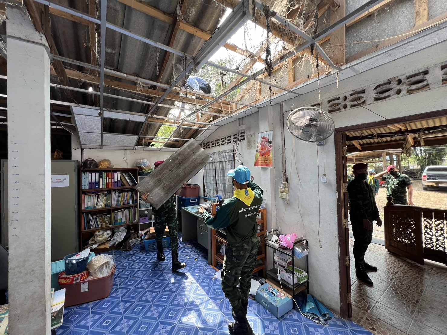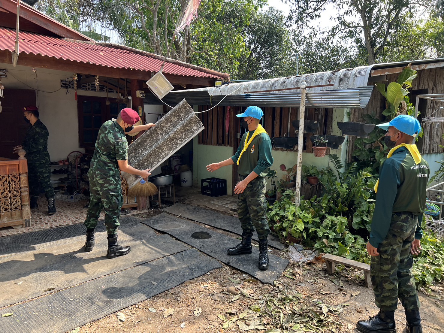 กองร้อยฝึกรบพิเศษที่ 3 จัดกำลังพลช่วยเหลือผู้ได้รับผลกระทบจากฝนตกหนัก และลมกระโชกแรงในพื้นที่ บ้านหัวฝาย ต.บ้านดง อ.แม่เมาะ จ.ลำปาง