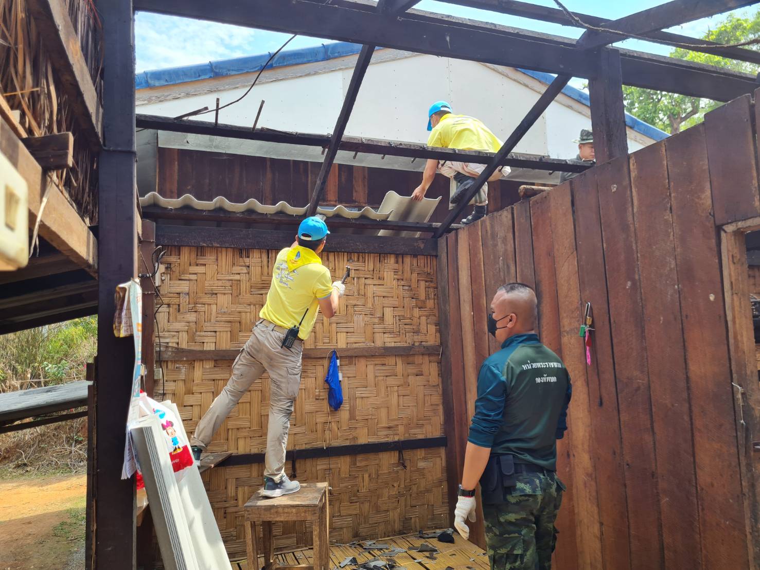 โดยวันนี้ 21 มีนาคม 2566 นายยุทธพงศ์ ไชยศร นายอำเภอจอมทอง/ผู้อำนวยการศูนย์อำนวยการจิตอาสาพระราชทานอำเภอจอมทอง ได้มอบหมายให้ นายหมวดเอกจิรพล สนธิคุณ ปลัดอำเภอจอมทอง/จิตอาสา 904 พร้อมด้วยเจ้าหน้าที่ อส อ.จอมทอง ร่วมกับพันโทอัครพล ลือดี ผู้บังคับกองพันพัฒนาที่ 3 พร้อมด้วยกำลังพลกองพันพัฒนาที่ 3 เข้าช่วยเหลือซ่อมแซมบ้านเรือนราษฎรที่ได้รับความเสียหาย จากพายุฤดูร้อน เพื่อแก้ไขปัญหาความเดือดร้อนให้กับราษฎรในพื้นที่ โดยได้รับการสนับวัสดุอุปกรณ์จากเทศบาลตำบลบ้านแปะ อ.จอมทอง จ.เชียงใหม่