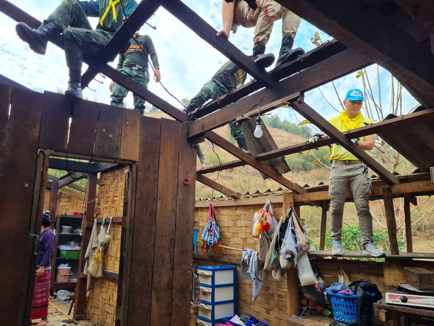 อ.จอมทอง พร้อมกองพันพัฒนาที่ 3 ช่วยเหลือซ่อมแซมบ้านเรือนราษฎรถูกพายุกระหน่ำ