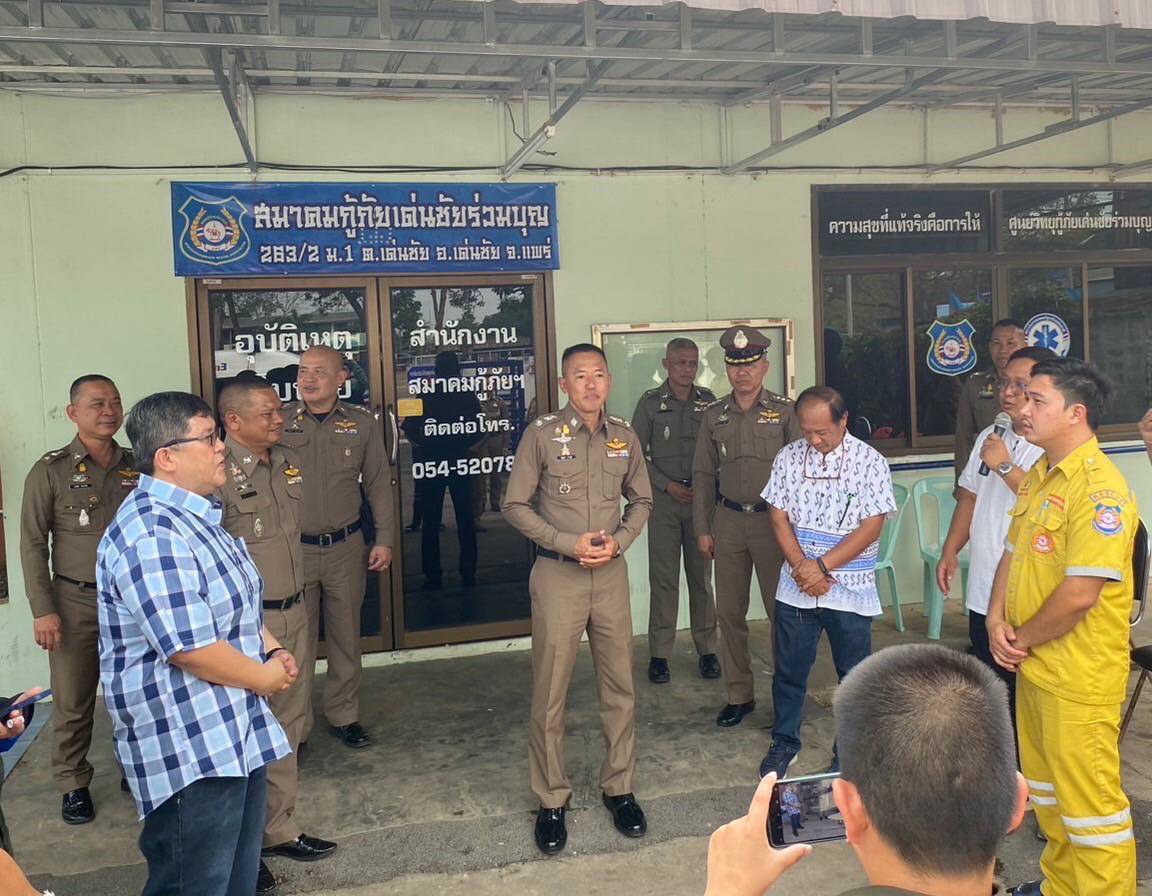โดยมีพ.ต.อ.จิตรภณ สมหมาย ผกก.ฝ่ายอำนวยการตำรวจภูธรจังหวัดแพร่ ,พ.ต.อ.นรินทร์ วรรณมณี ผู้กำกับสถานีตำรวจภูธรเมืองแพร่ ,พ.ต.อ.ไกรสิทธิ พรหมปฏิมา ผู้กำกับการสถานีตำรวจภูธรเด่นชัย และ คณะ ร่วมมอบรถ
