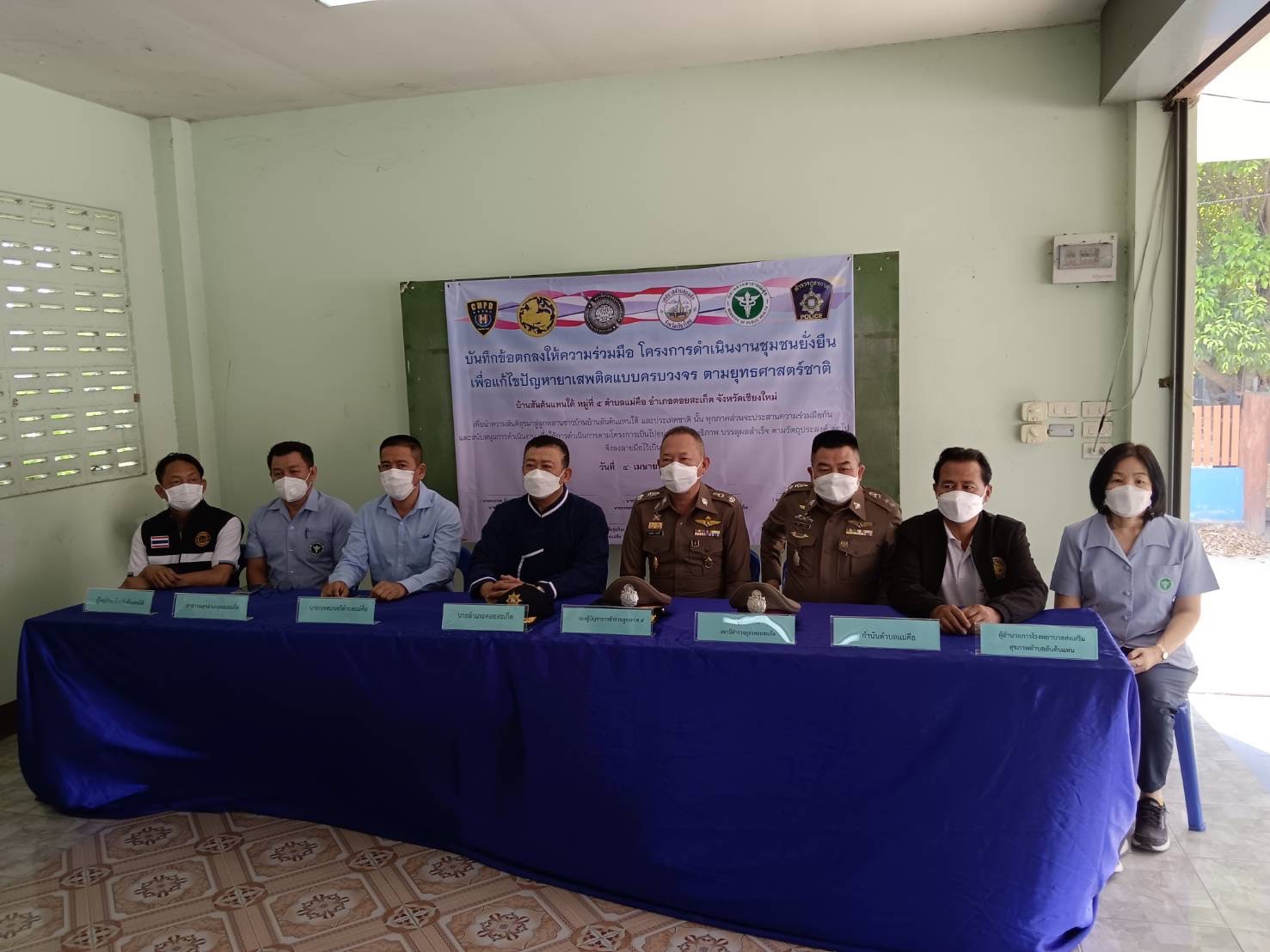 วันที่ 4 เม.ย.66 เวลา 09.30 น.พล.ต.ต.พฤทธิพงษ์ ประยูรศิริ รอง ผบช.ภ.5 ได้เข้าร่วมสังเกตการณ์ การทำบันทึกข้อตกลงให้ความร่วมมือของหน่วยงาน โครงการดำเนินงานชุมชนยั่งยืนเพื่อแก้ไขปัญหายาเสพติดแบบครบวงจรตามยุทธศาสตร์ชาติ ประจำหมู่บ้านสันต้นแหนใต้ ม.5 ต.แม่คือ อ.ดอยสะเก็ด จ.เชียงใหม่