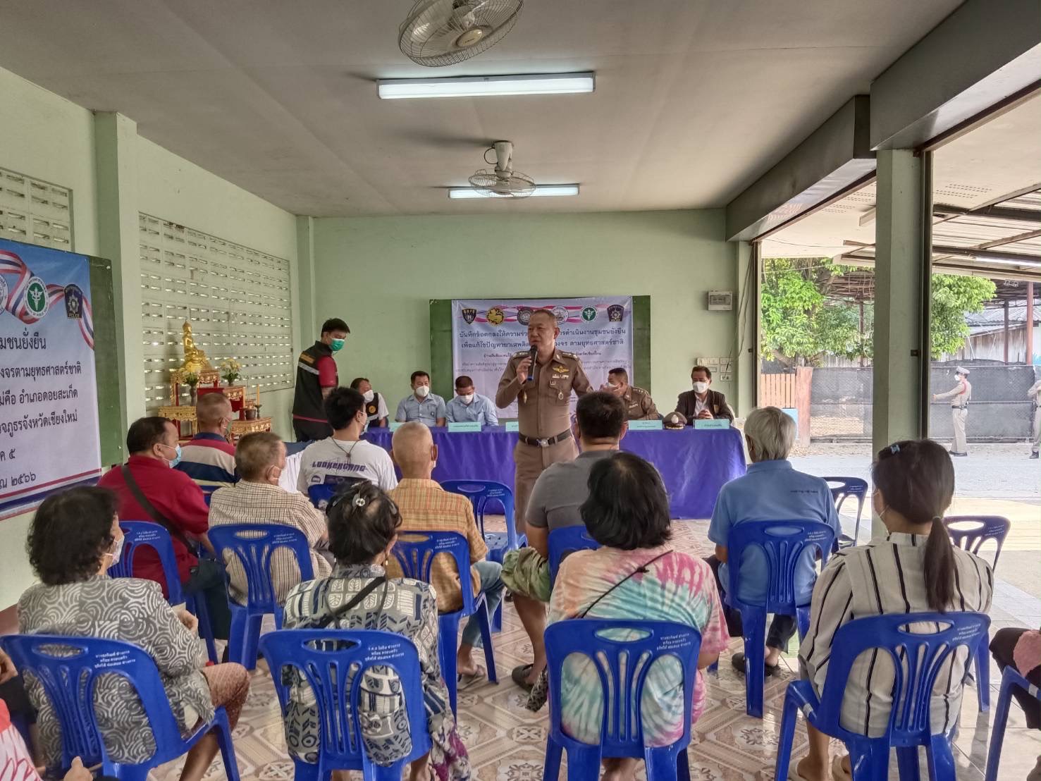 โดยมี นายธนกฤต จันทะจำรัสศิลป์ นายอำเภอดอยสะเก็ด/ประธาน, พ.ต.อ.ธงชัย กรรณิกา ผกก.สภ.ดอยสะเก็ด จ.เชียงใหม่, นายกเทศมนตรีเทศบาลตำบลแม่คือ, สาธารณสุขอำเภอดอยสะเก็ด,