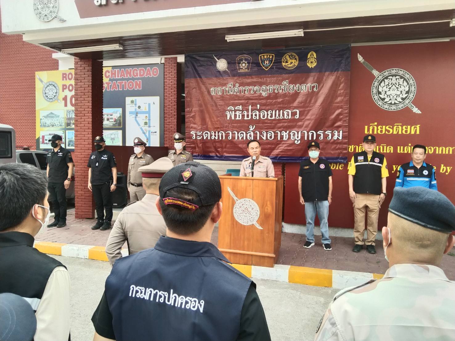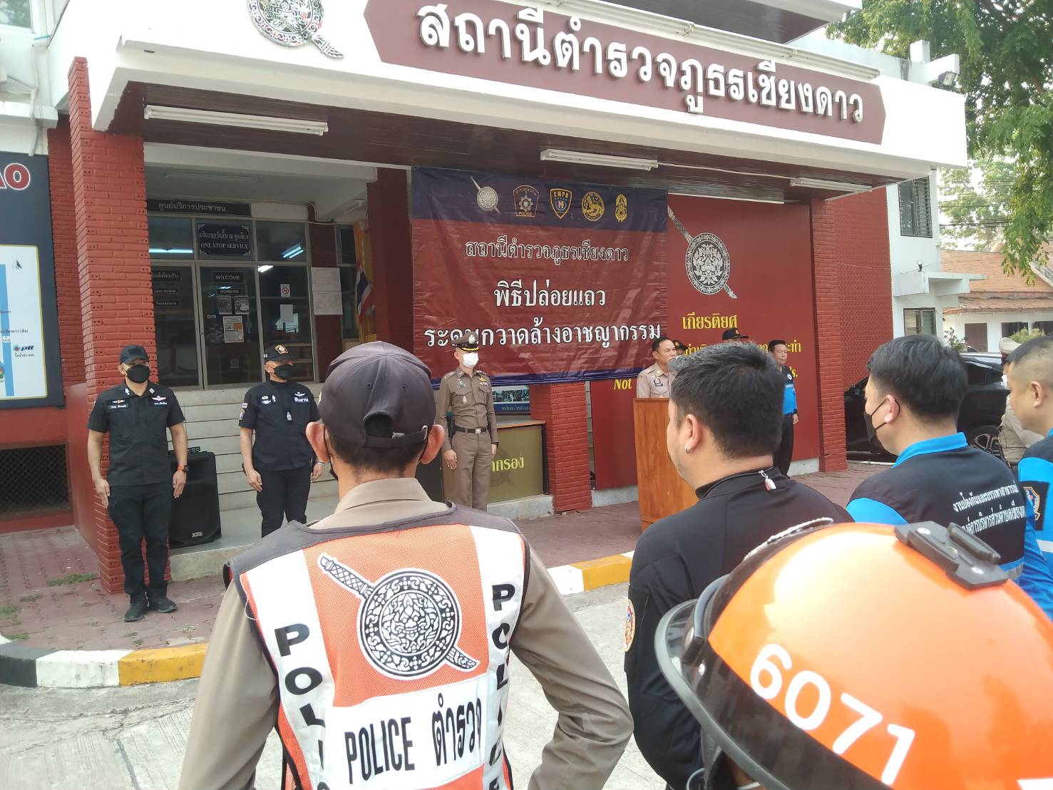 สถานีตำรวจภูธรเชียงดาวปฏิบัติการเพื่อความสุขประชาชนได้บูรณาการปล่อยแถวนะดมกวาดล้างอญากรรมช่วงเทศกาลปี๋ใหม่เมือง โดยมีท่าน นายอำเภอ สงัด บูรณประกรณ์เป็นประธานในพิธี พร้อมทั้ง พตอ เสกสรรค์ ขันคำนันต๊ะ และหัวหน้าชุดเฉพาะกิจเคลื่อนที่เร็ว ทหาร ตำรวจ อาวาสมัครรักษาดินแดนเทศบาล อบต อปพร ทีมกู้ชีพ-กู้ภัย เข้าร่วมบูรณการเป็นขบวนแถวยาว เพื่ออำนวยความสะดวก และปกป้องภัยอันตรายให้กับนักม่องเที่ยวและประชาชนในพื้นที่อย่างรวดเร็วและมีประสิทธิภาพถูกต้องตามหลักวิชาการ ตลอดจนการแจ้งข่าวสารอาญากรรมหรือบุคคลต้องสงสัย เพื่อให้ประชาชนอุ่นใจมั่นใจว่าบ้านเมืองที่ตนเองอยุ่อาศัยปลอดภัยมีส่วนราชการห่วงใยคอยดูแลทุกพื้นที่ 24 ชั่วโมง