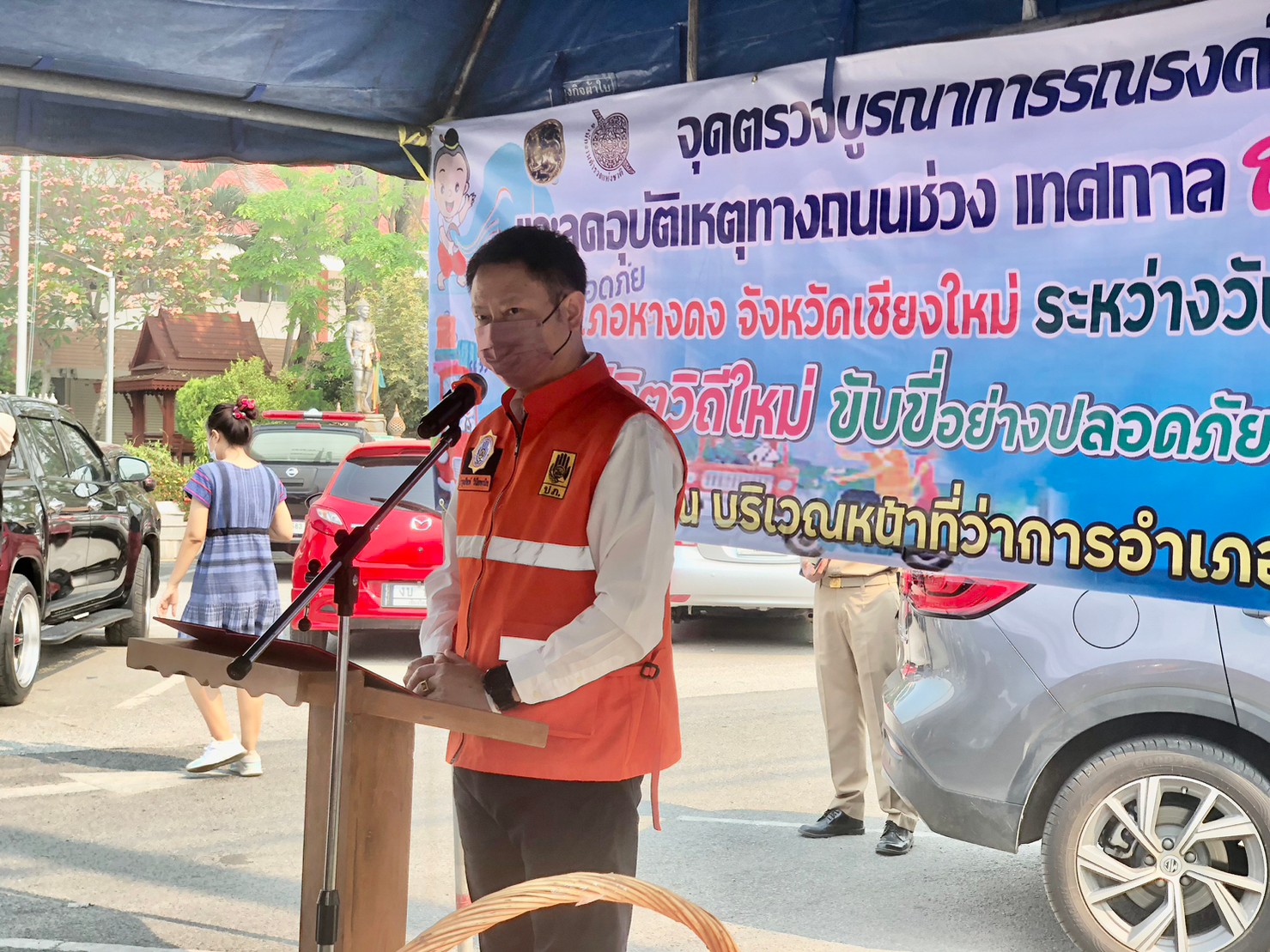 นายอำเภอเปิดด่านหน้าที่ว่าการ อ.หางดง เพื่อป้องกัน ลดอุบัติเหตุในพื้นที่ พร้อมเปิดและตรวจเยี่ยมด่านตำบล หนองควาย บ้านปง