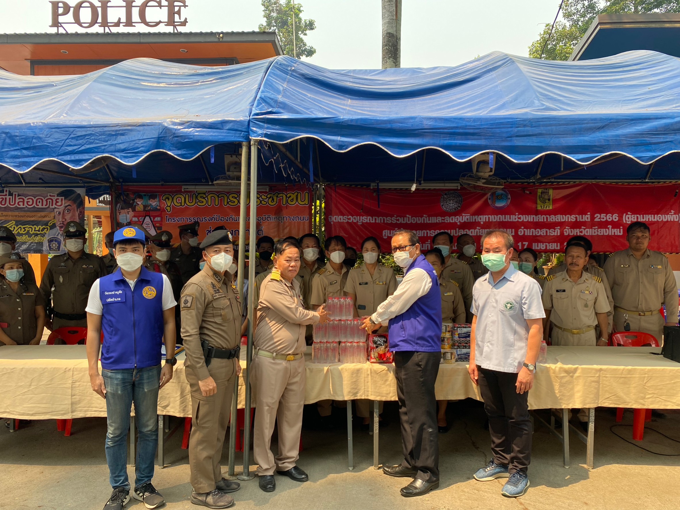 วันที่ 11 เม.ย. 66 เวลา 11.00 น. นายเลอยศ พุทธชิโนรสสกุล นายอำเภอสารภี (ผู้อำนวยการศูนย์ปฏิบัติการความปลอดภัยทางถนนอำเภอสารภี) เป็นประธานพิธีเปิดจุดตรวจบูรณาการจุดบริการประชาชนตู้ยามหนองผึ้ง ถนนเชียงใหม่ – ลำพูน ต.หนองผึ้ง อ.สารภี จ.เชียงใหม่ โดยจุดตรวจได้บูรณาการการปฏิบัติหน้าที่จาก สภ.สารภี สาธารณสุขอำเภอสารภี รพ.สต.หนองผึ้ง เทศบาลตำบลหนองผึ้ง กำนัน ผู้ใหญ่บ้านฯ ตำบลหนองผึ้ง สมาชิก อปพร.ทต.หนองผึ้ง และสมาชิก อส.อ.สารภีที่ 20 ร่วมปฏิบัติหน้าที่เพื่อป้องกันและลดอุบัติเหตุทางถนนในห้วงเทศกาลสงกรานต์ พ.ศ. 2566 ช่วงควบคุมเข้มงวด ในระหว่างวันที่ 11-17 เม.ย. 66 และได้สั่งการเน้นย้ำในการดำเนินการลดอุบัติเหตุทางถนน การดำเนินการตามมาตรการ 10 รสขม การตักเตือนผู้ขับขี่ยานพาหนะไม่ปลอดภัย การเฝ้าระวังผู้มีพฤติการณ์เมาสุราแล้วขับขี่ยานพาหนะ และรณรงค์การสวมหมวกนิรภัย 100%