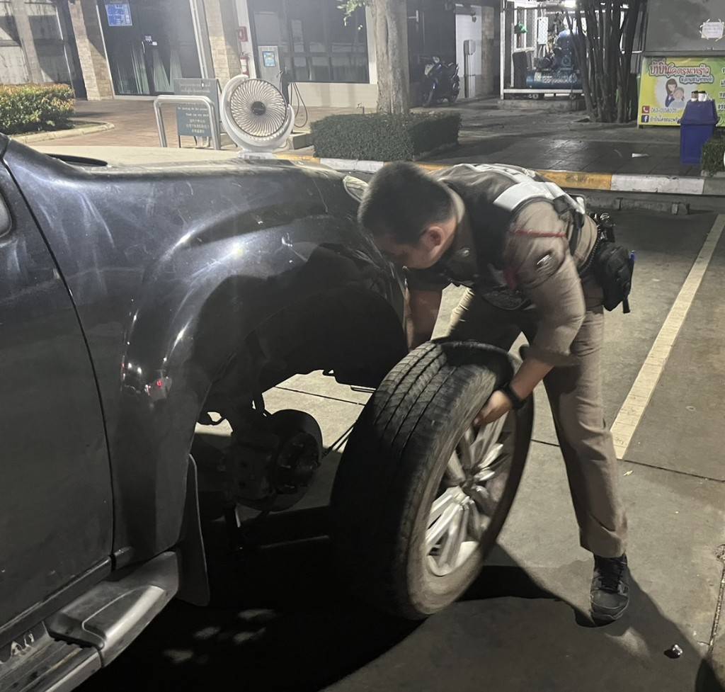 ตำรวจ สภ.ภูพิงคราชนิเวศน์ ช่วยเหลือประชาชนรถยนต์ยางรั่ว
