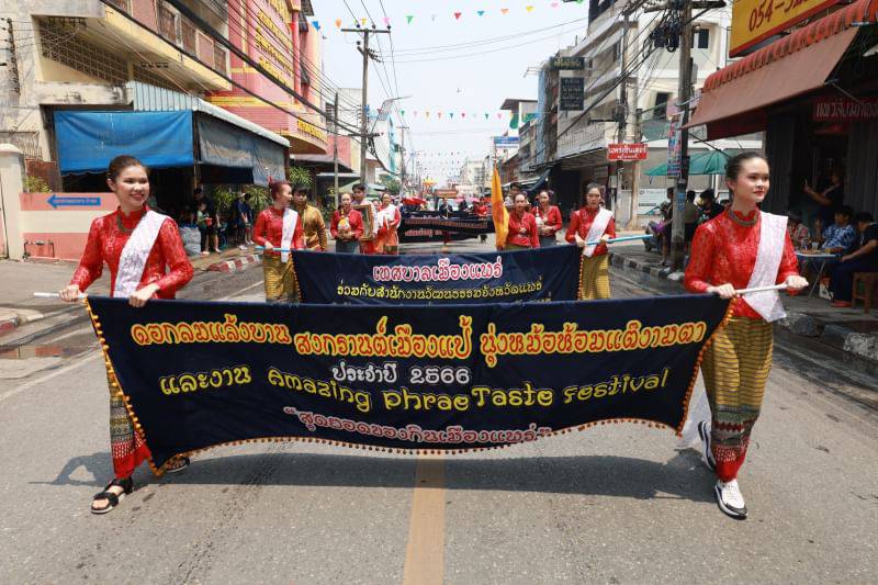 เทศบาลเมืองแพร่ ร่วมกับวัฒนธรรมจังหวัดแพร่ จัดขบวนแห่สืบสานประเพณีที่ยิ่งใหญ่ในงานประเพณีสงกรานต์ “ดอกลมแล้งบาน สงกรานต์เมืองแป้ นุ่งหม้อฮ้อมแต้งามตา” และ “Amazing Phrae Taste Festival” สุดยอดของกินเมืองแพร่ ประจำปี 2566