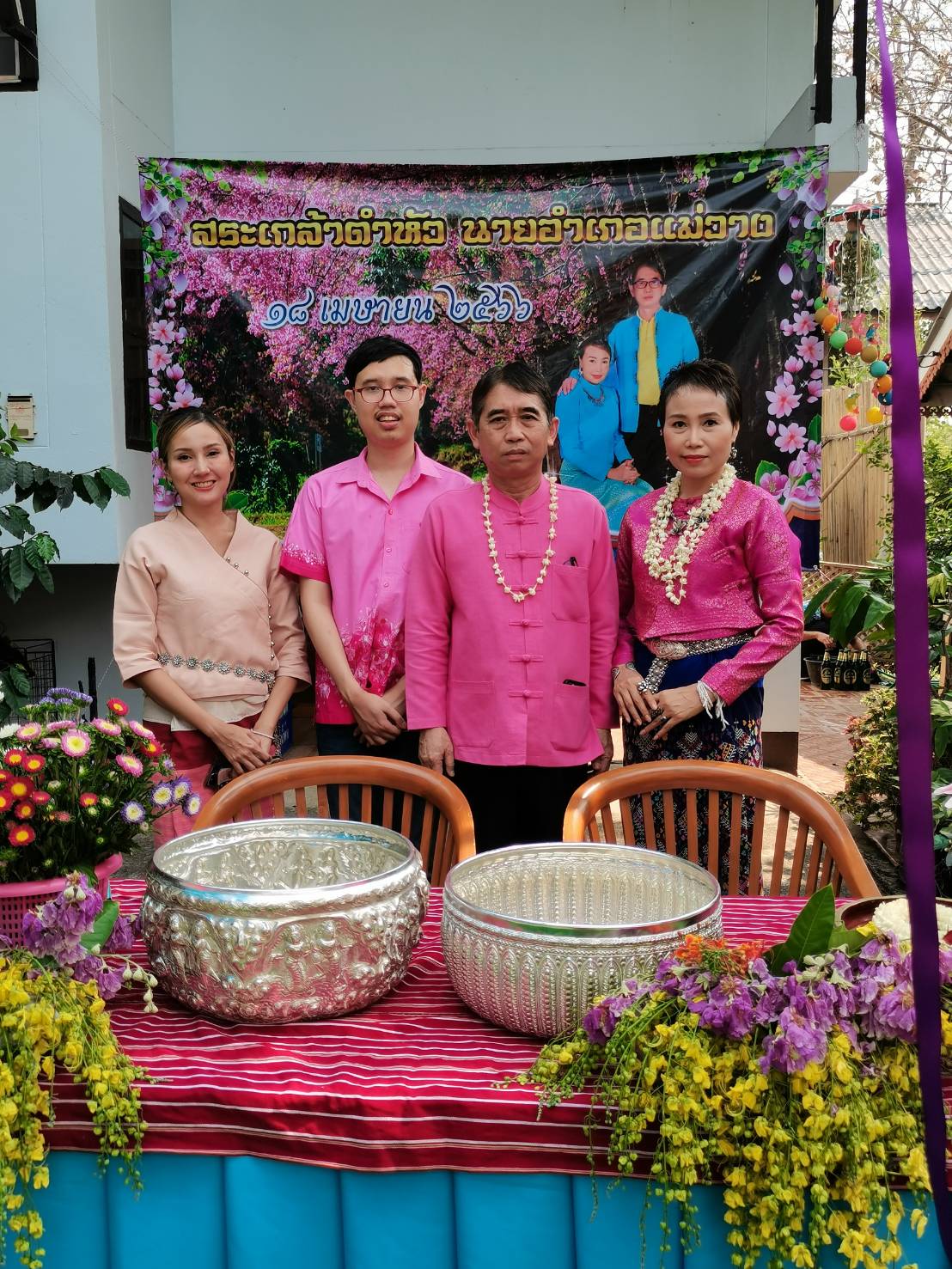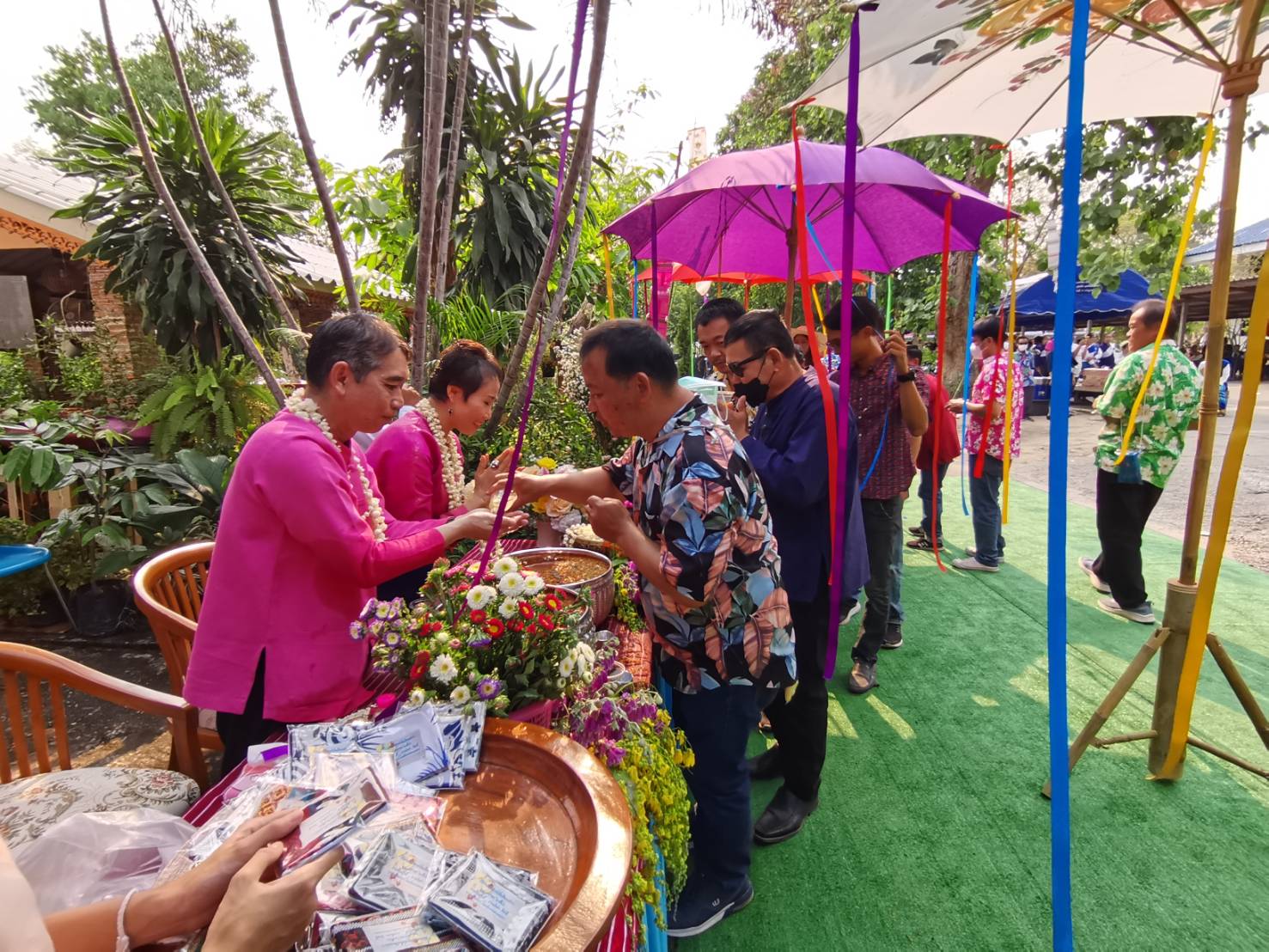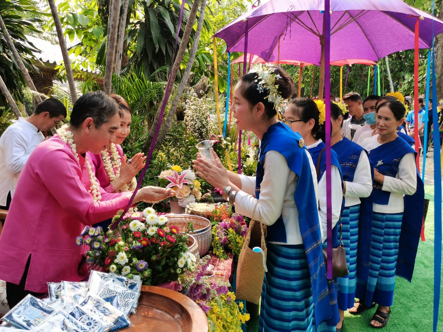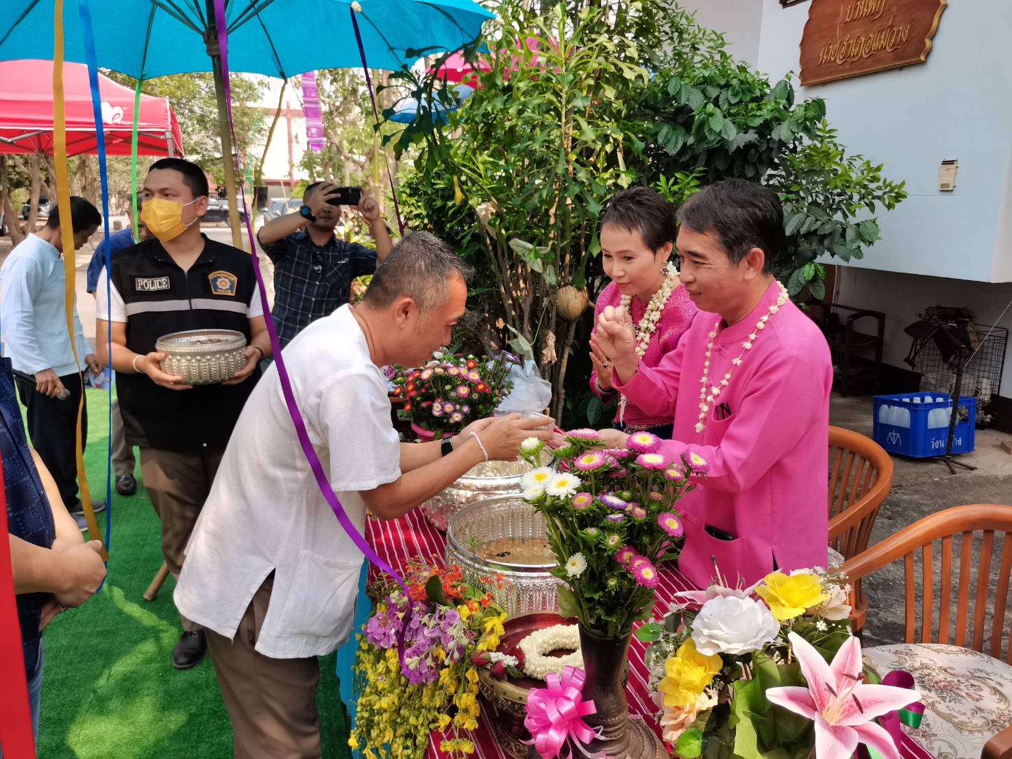 นายกสมาคมกำนันผู้ใหญ่บ้านจังหวัดเชียงใหม่ ร่วมกันรดน้ำดำหัวนายอำเภอแม่วาง