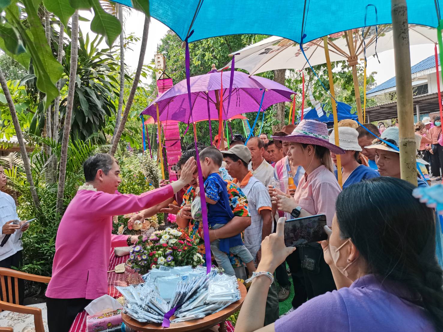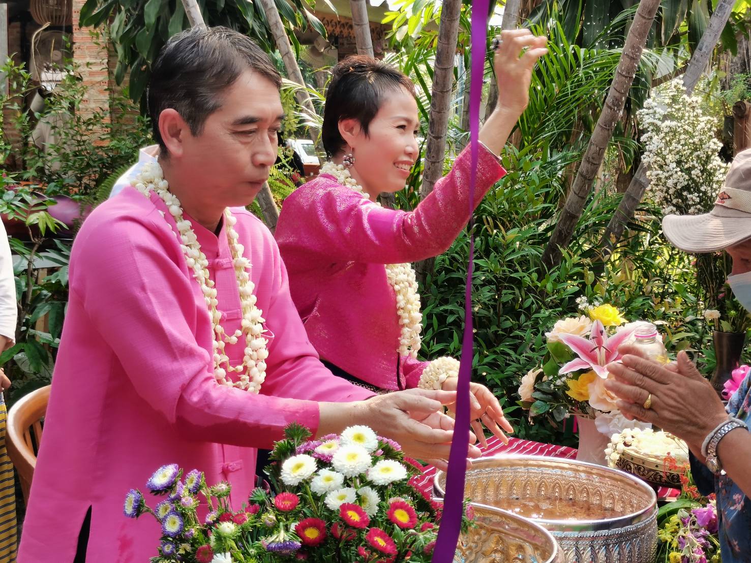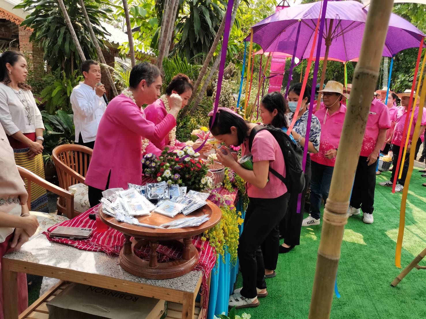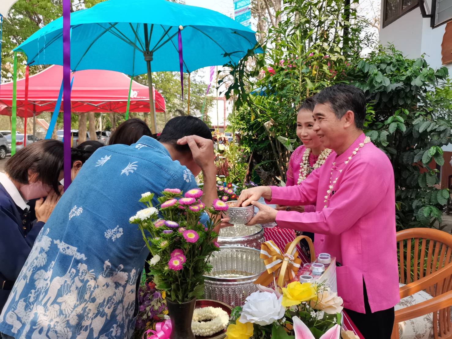 นายกสมาคมกำนันผู้ใหญ่บ้านจังหวัดเชียงใหม่ ร่วมกันรดน้ำดำหัวนายอำเภอแม่วาง