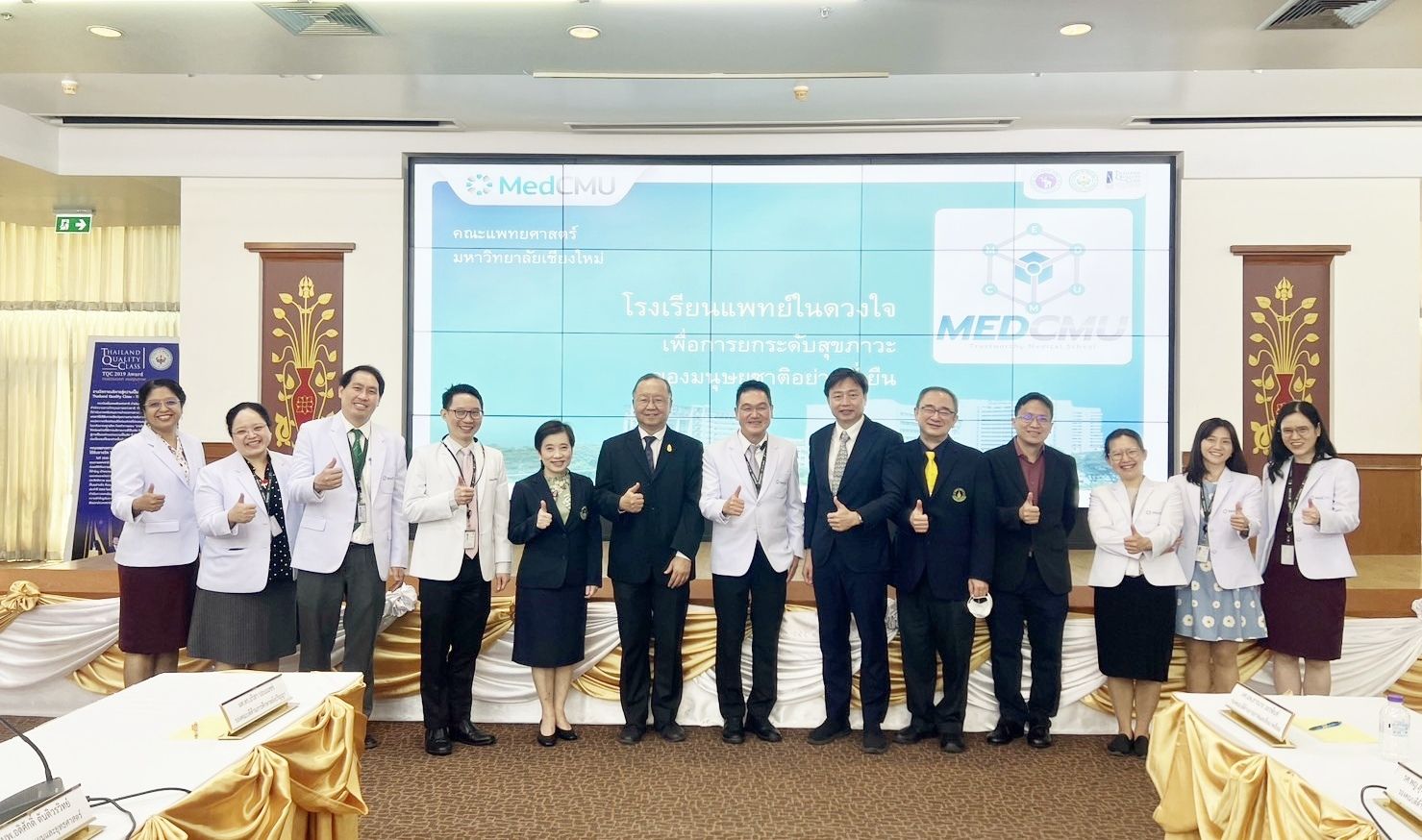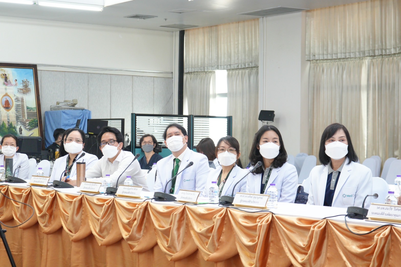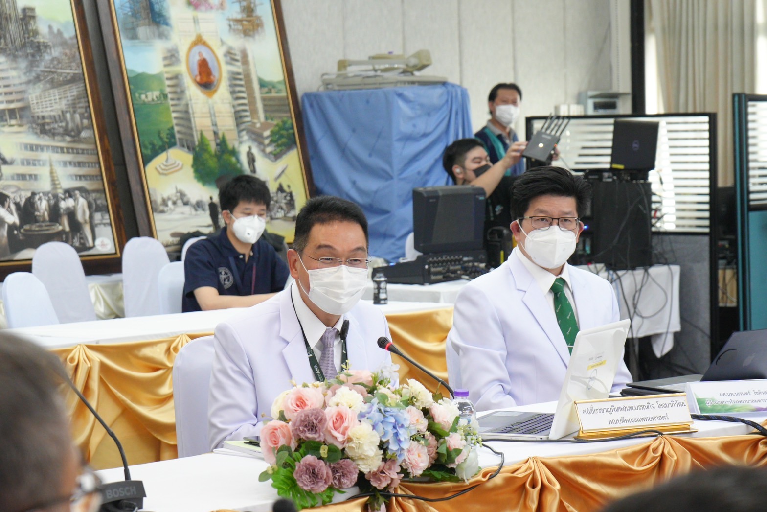 ศ.(เชี่ยวชาญพิเศษ)นพ.บรรณกิจ โลจนาภิวัฒน์ คณบดีคณะแพทยศาสตร์ มช. พร้อมคณะผู้บริหาร ร่วมให้การต้อนรับ ศ.นพ.พงษ์ศักดิ์ วรรณไกรโรจน์ ผู้อำนวยการสถาบันรับรองมาตรฐานการศึกษาแพทยศาสตร์ พร้อมคณะ ในโอกาสตรวจรับการประเมินตามเกณฑ์มาตรฐานการศึกษาแพทยศาสตร์ หลักสูตรแพทยศาสตรบัณฑิต หลักสูตรปรับปรุง พ.ศ. 2566 จากสถาบันรับรองมาตรฐานการศึกษาแพทยศาสตร์ (สมพ.) โดยคณบดีฯ และ รศ.พญ.ประภาพร สู่ประเสริฐ รองคณบดีคณะแพทยศาสตร์ มช. กล่าวรายละเอียดภาพรวมของหลักสูตร ให้แก่คณะผู้ตรวจรับการประเมินฯ เมื่อวันที่ 18 เมษายน 2566 ณ ห้องประชุม ชั้น 15 อาคารเฉลิมพระบารมี คณะแพทยศาสตร์ มช.