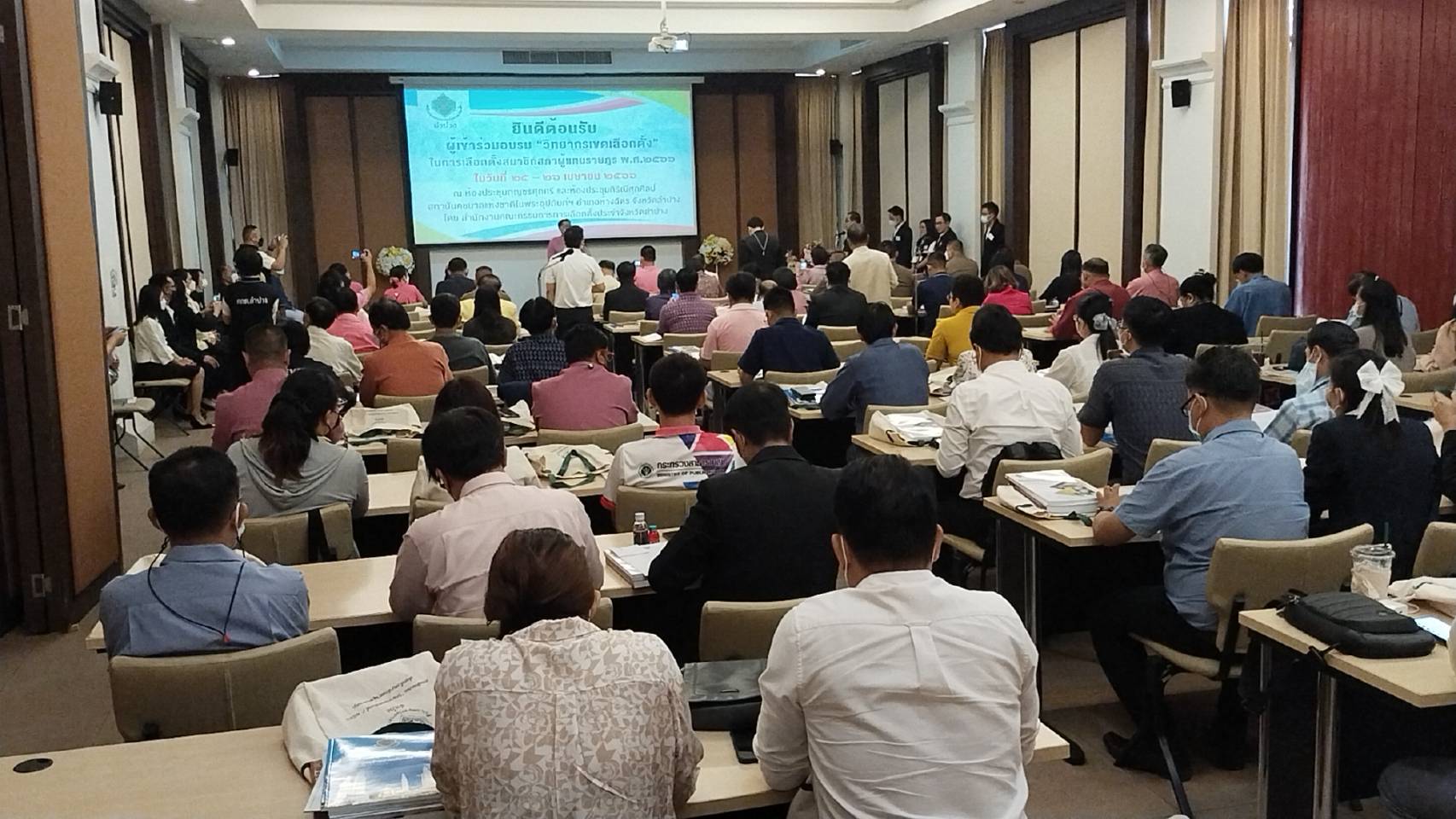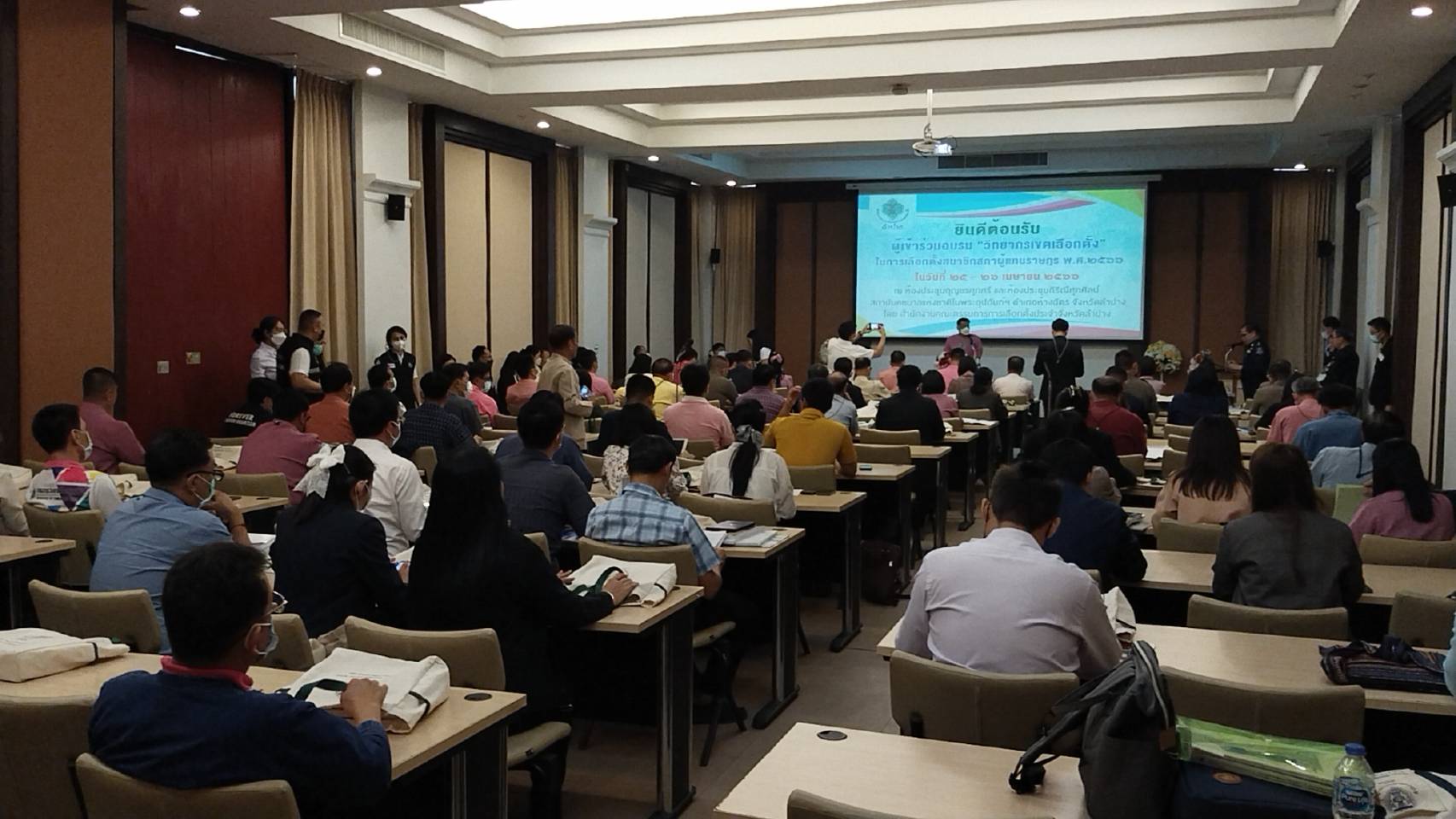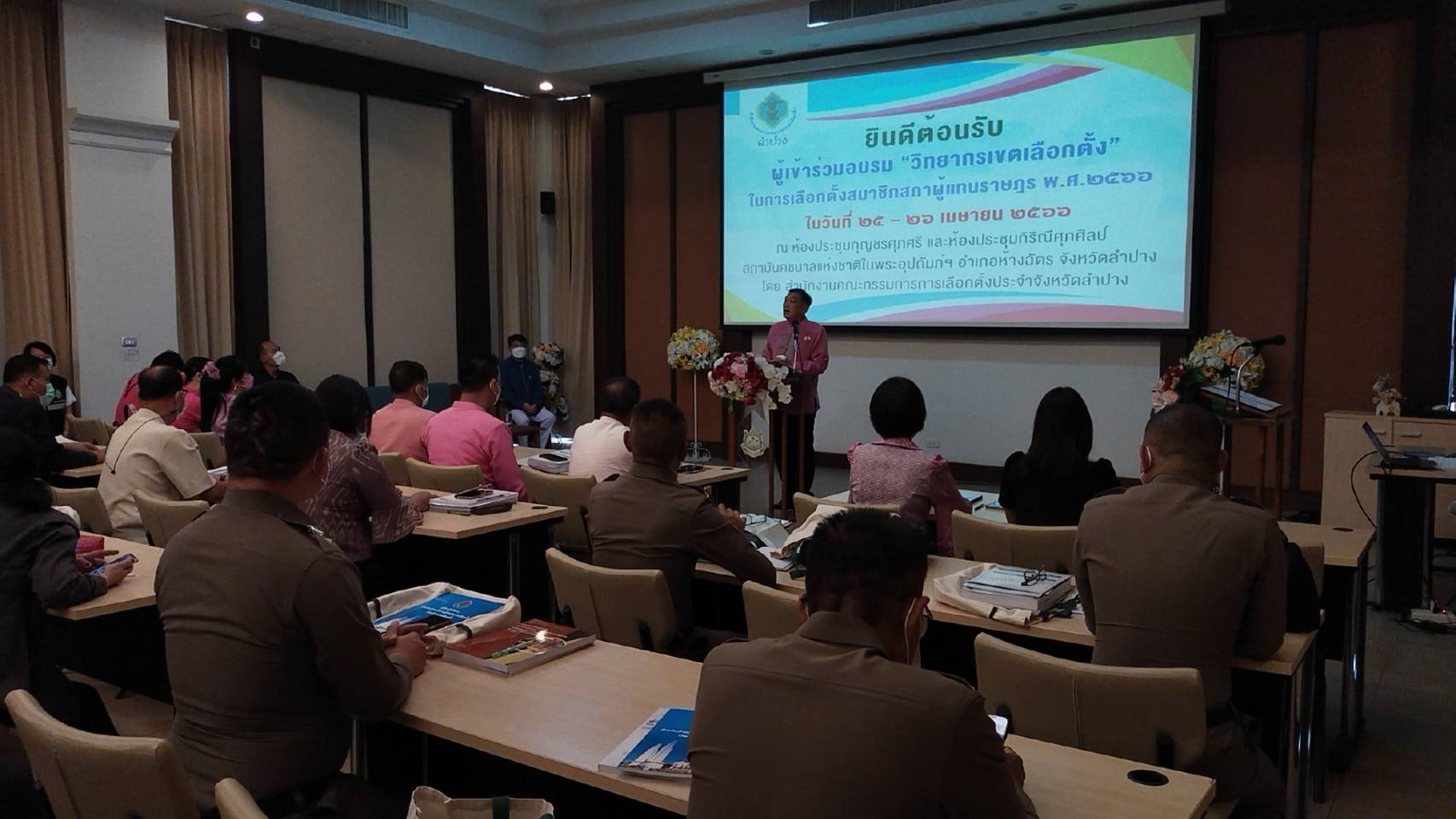โดยมี นายฐิติวัฒน์ สุดเจริญ รอง ผอ.กกต.จ.ลำปางกล่าวรายงาน และวัตถุประสงค์การจัดฝึกอบรม ช่วง25-26 เมษายน2566 รวม2วัน ผู้เข้าอบรม110,คน ประกอบด้วย ประธาน กกต และ ผอ.กกต.ประจำเขต พร้อมคณะกรรมการฯเลือกตั้งเขต1-4 อนุกรรมการการเลือกตั้ง ประจำอำเภอ และผู้ประสานงานประจำเขตเลือกตั้ง