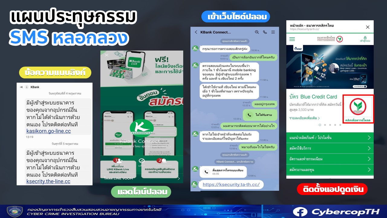 ตำรวจไซเบอร์ เตือนภัย SMS ธนาคารกสิกรไทยปลอมระบาด อ้างว่ามีบุคคลอื่นเข้าสู่ระบบจากอุปกรณ์อื่น