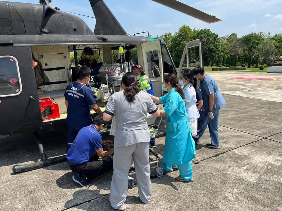 วันที่ 9 พฤษภาคม 2566 เวลา 11.57 น. สถาบันการแพทย์ฉุกเฉินแห่งชาติ ได้รับการประสานจากศูนย์รับแจ้งเหตุและสั่งการจังหวัดแม่ฮ่องสอน ขอสนับสนุนเฮลิคอปเตอร์เพื่อรับผู้ป่วยเด็ก หญิงไทย อายุ 1 วัน คลอดก่อนกำหนด มีอาการหายใจเร็ว วินิจฉัย ภาวะคลอดก่อนกำหนด ร่วมกับภาวะหายใจลำบาก และสงสัยมีภาวะติดเชื้อร่วมด้วย (Preterm GA 31+2 wk/LMP , Mild RDS , R/O infection) เพื่อส่งผู้ป่วยจากโรงพยาบาลแม่ลาน้อย ตำบลแม่ลาน้อย อำเภอแม่ลาน้อย จังหวัดแม่ฮ่องสอน ไป โรงพยาบาลนครพิงค์ ตำบลดอนแก้ว อำเภอแม่ริม จังหวัดเชียงใหม่ ศูนย์นเรนทร สถาบันการแพทย์ฉุกเฉินแห่งชาติ ได้ดำเนินการประสานกองทัพบก ขอสนับสนุนอากาศยาน และนักบิน ประเภทอากาศยานเฮลิคอปเตอร์ Bell 212 ชุดปฏิบัติการลำเลียงทางอากาศจาก โรงพยาบาลศรีสังวาลย์ จังหวัดแม่ฮ่องสอน