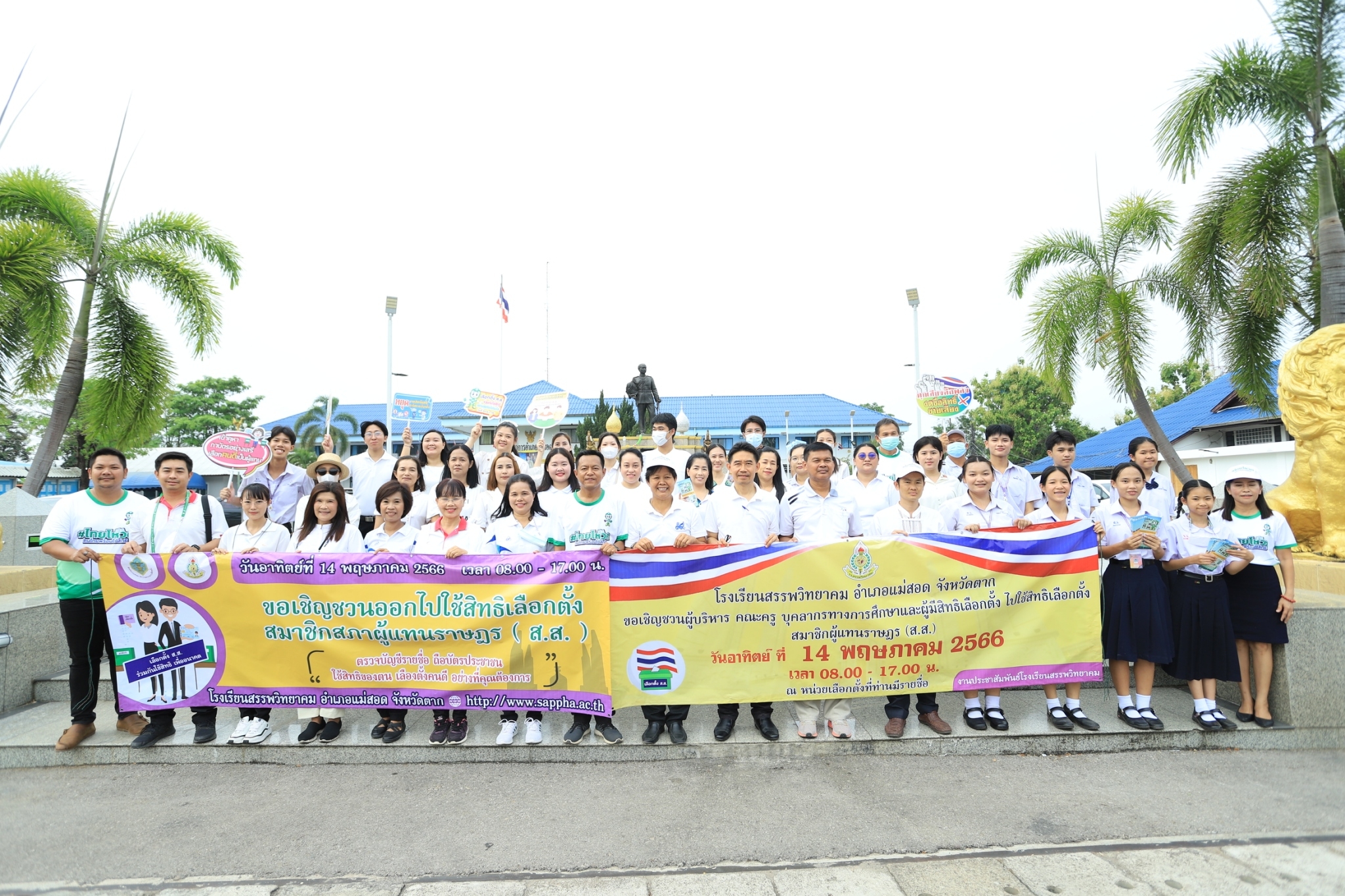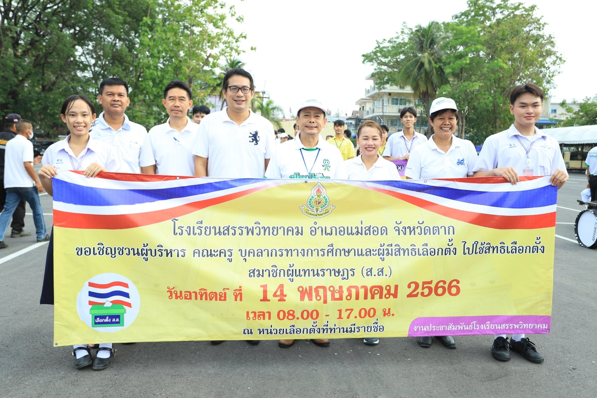 วันนี้ (9 พ.ค. 66) ที่บริเวณลานกิจกรรมที่ว่าการอำเภอแม่สอด นายกฤษณะ เครืออยู่ ผู้อำนวยการโรงเรียนสรรพวิทยาคม พร้อมด้วยคณะผู้บริหาร คณะครู บุคลากร นักเรียนและวงโยธวาทิตของโรงเรียน ร่วมกิจกรรมเดินรณรงค์โค้งสุดท้ายเลือกตั้งสมาชิกสภาผู้แทนราษฎร (BIG DAY) ) เพื่อกระตุ้นให้ประชาชน ผู้มีสิทธิเลือกตั้ง มีความตื่นตัวออกไปใช้สิทธิเลือกตั้ง ส.ส.โดยพร้อมเพรียงกัน ในวันอาทิตย์ที่ 14 พฤษภาคม 2566