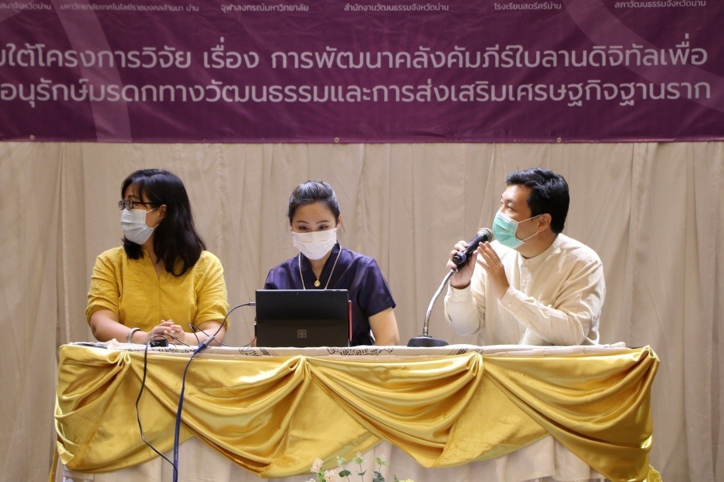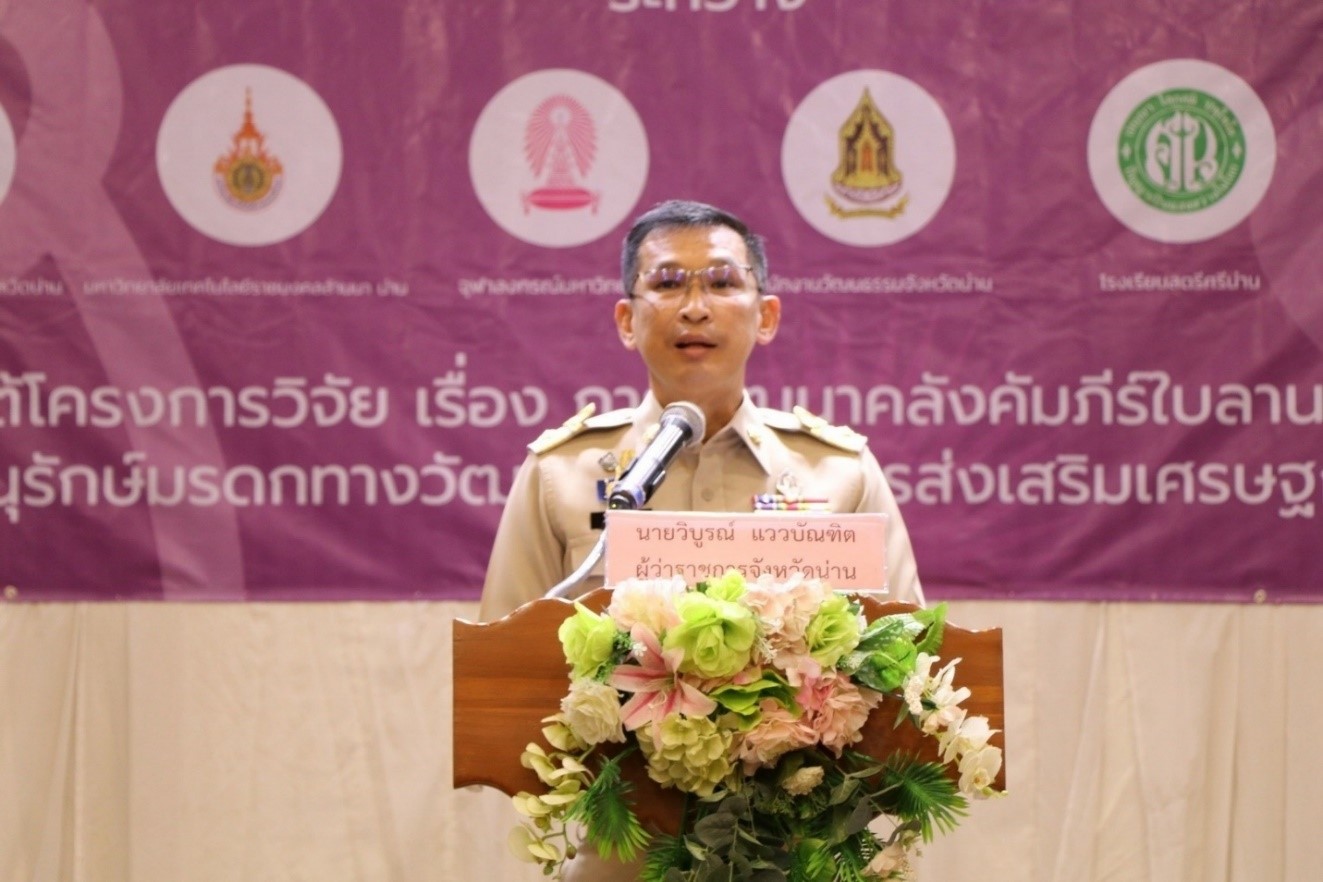 ในการนี้ นายภัทรภร ชัยวัฒนกุล วัฒนธรรมจังหวัดน่านได้กล่าวถึงนโยบายการส่งเสริมการอนุรักษ์วัฒนธรรมโดยเฉพาะมรดกทางภูมิปัญญาที่สำคัญของจังหวัดน่าน ในส่วนของจุฬาลงกรณ์มหาวิทยาลัย ศาสตราจารย์ ดร.จักรพันธ์ สุทธิรัตน์ รองอธิการบดีด้านวิจัย กล่าวแถลงการณ์ความร่วมมือและการสนับสนับสนุนการดําเนินงานวิจัยของจุฬาลงกรณ์มหาวิทยาลัย คณะผู้วิจัยจากจุฬาลงกรณ์มหาวิทยาลัย นำโดย ผศ.ดร.ฐิติรัตน์ ปั้นบารุงกิจ รองผู้อํานวยการฝ่ายวิจัย สถาบันเอเชียศึกษา จุฬาฯ หัวหน้าโครงการวิจัย ได้กล่าวรายงานการดําเนินงานของโครงการวิจัย สืบเนื่องมาจากข้อมูลอันทรงคุณค่าจากคัมภีร์ใบลาน