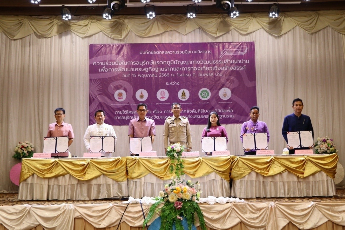 น่าน พิธีการลงนามบันทึกข้อตกลงความร่วมมือทางวิชาการ เรื่อง ความร่วมมือในการอนุรักษ์มรดกภูมิปัญญาทางวัฒนธรรมล้านนาน่าน เพื่อการพัฒนาเศรษฐกิจฐานรากและการท่องเที่ยวเชิงสร้างสรรค์