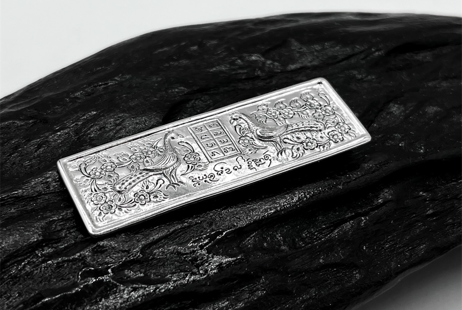 3.เข็มกลัดลงยันต์มหานิยม เป็นรูปนกยูงคู่ของน่าน ทีมนักวิจัยได้ข้อมูลจากเอกสารโบราณ ที่บันทึกไว้ว่าเป็นวัดดอนตัน อ.ท่าวังผา จังหวัดน่าน ที่มีความหมายด้านการสื่อสารถึงความเป็นสิริมงคลด้านหน้าที่ การงาน และการค้าขาย
