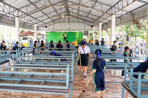 จิตอาสาพระราชทาน 904, จิตอาสา สนภ.3 นทพ. พร้อม ชุดบรรเทาสาธารณภัย สนภ.3 นทพ. จำนวน 8 นาย พร้อมรถบรรทุกน้ำอเนกประสงค์ จำนวน 1 คัน, รถตรวจการณ์อเนกประสงค์ จำนวน 1 คัน บำเพ็ญสาธารณประโยชน์บริเวณพื้นที่โรงอาหารของโรงเรียน เพื่อเป็นการดูแลรักษาสถานที่ ให้มีความสะอาด เรียบร้อย ปลอดภัย ไม่เป็นแหล่งสะสมเชื้อไวรัสโคโรนา (COVID-19) เพื่อเตรียมความพร้อมในการเปิดเรียนภาคเรียนที่ 1 ปีการศึกษา 2566 ช่วยเหลือเพื่อบรรเทาปัญหาการขาดแคลนน้ำของโรงเรียนในห้วงฤดูแล้ง โดยมีคณะครูและนักเรียนร่วมกิจกรรม ณ รร.สองแคววิทยาคม ต.ดอยหล่อ อ.ดอยหล่อ จว.ช.ม.