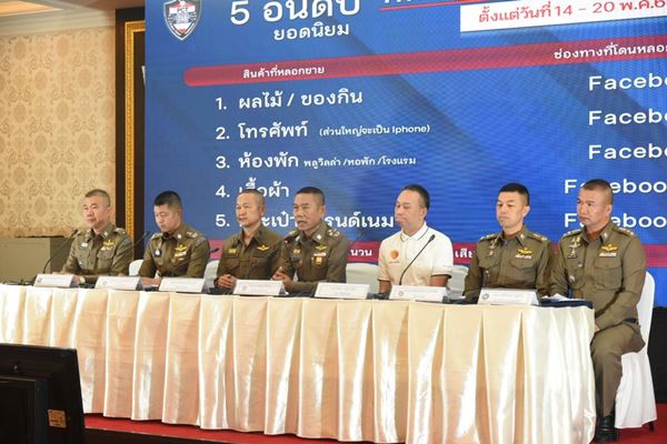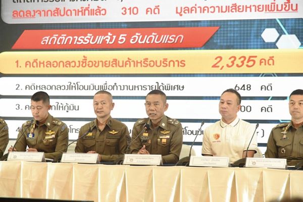 พล.ต.อ.สมพงษ์ ชิงดวง ที่ปรึกษาพิเศษ ตร.กล่าวว่า ในรอบสัปดาห์ที่ผ่านมา (14-20 พ.ค.2566) มีสถิติการรับแจ้งความคดีออนไลน์มากที่สุดยังเป็นคดีเดิมๆ 5 อันดับ ได้แก่ อันดับ 1) คดีหลอกลวงซื้อขายสินค้าหรือบริการ 2) คดีหลอกลวงให้โอนเงินเพื่อทำงานหารายได้พิเศษ 3) คดีหลอกลวงให้กู้เงิน 4) คดีข่มขู่ทางโทรศัพท์ให้เกิดความกลัว แล้วหลอกให้โอนเงิน (Call Center) และ 5) คดีหลอกลวงให้ลงทุนผ่านระบบคอมพิวเตอร์ สำหรับคดีออนไลน์ที่มิจฉาชีพนำมาหลอกลวง นายวัฒนา ภู่โอบอ้อม หรือ ต๋อง ศิษย์ฉ่อย สูญเงินไป 3.2 ล้านบาทเศษ ซึ่งถือเป็นเรื่องจำเป็นเร่งด่วน ต้องเตือนให้ประชาชนได้รับทราบ จึงได้เชิญนายวัฒนา ภู่โอบอ้อม หรือ ต๋อง ศิษย์ฉ่อย มาร่วมแถลงข่าวในครั้งนี้ด้วย
