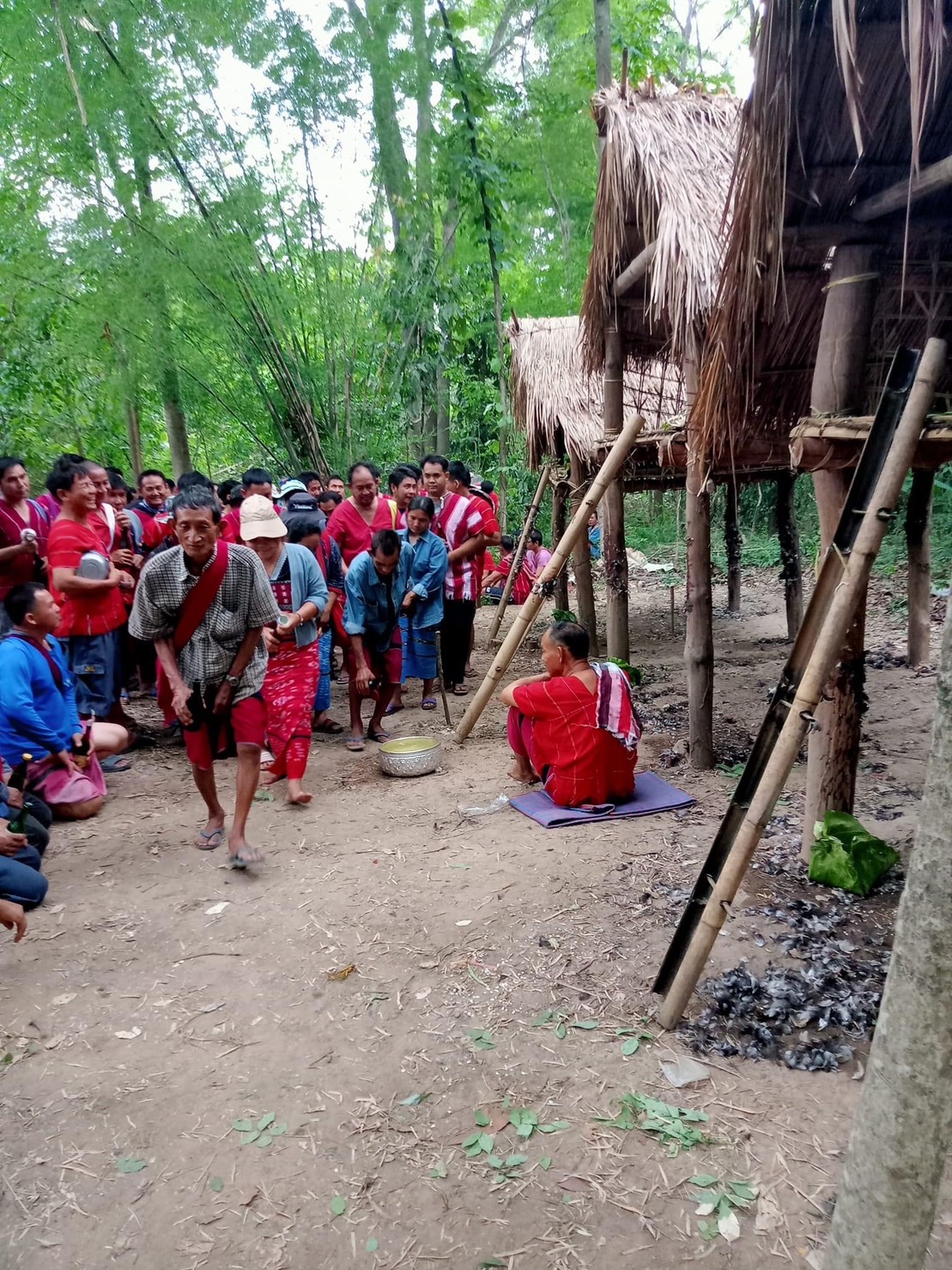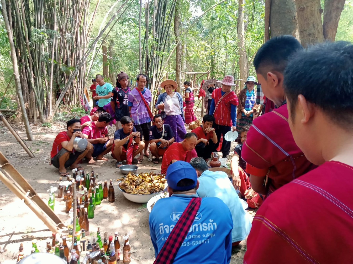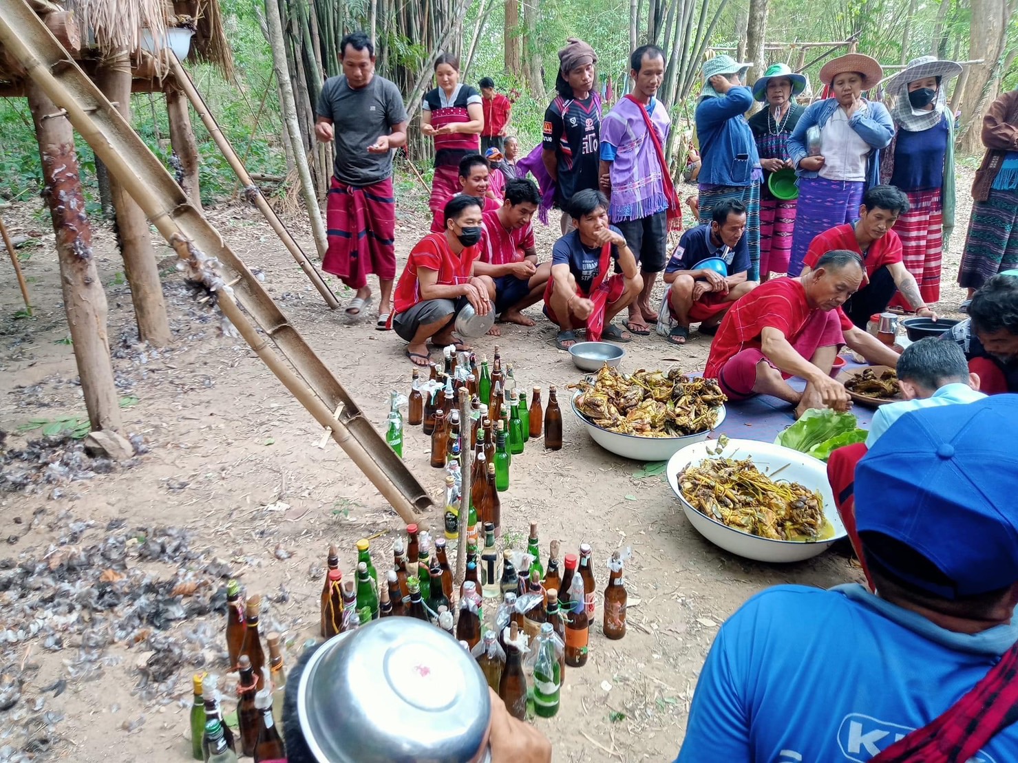เมื่อวันที่ 23 พ.ค.2566 ที่ป่าสาธารณะในหมู่บ้านห้วยม่วงฝั่งซ้าย หมู่6 ต.แม่สอย อ.จอมทอง จ.เชียงใหม่ ทางชาวกระเหรี่ยงโผล่ง หรือ กระเหรี่ยงแดง ได้จัดประเพณีเลี้ยงผีบ้าน โดยชาวบ้านจะนำไก่ต้มมารวมกันที่ศาลเพียงตาตามประเพณีที่ยึดถือกันมาช้านานตั้งแต่สมัยบรรพบุรุษ