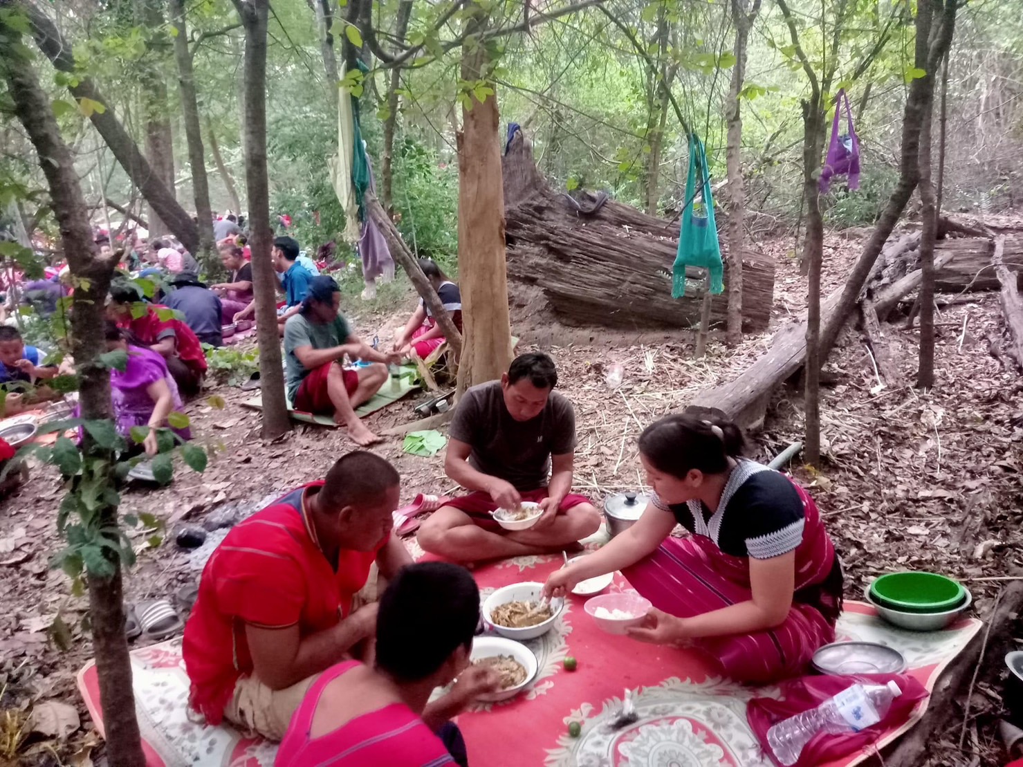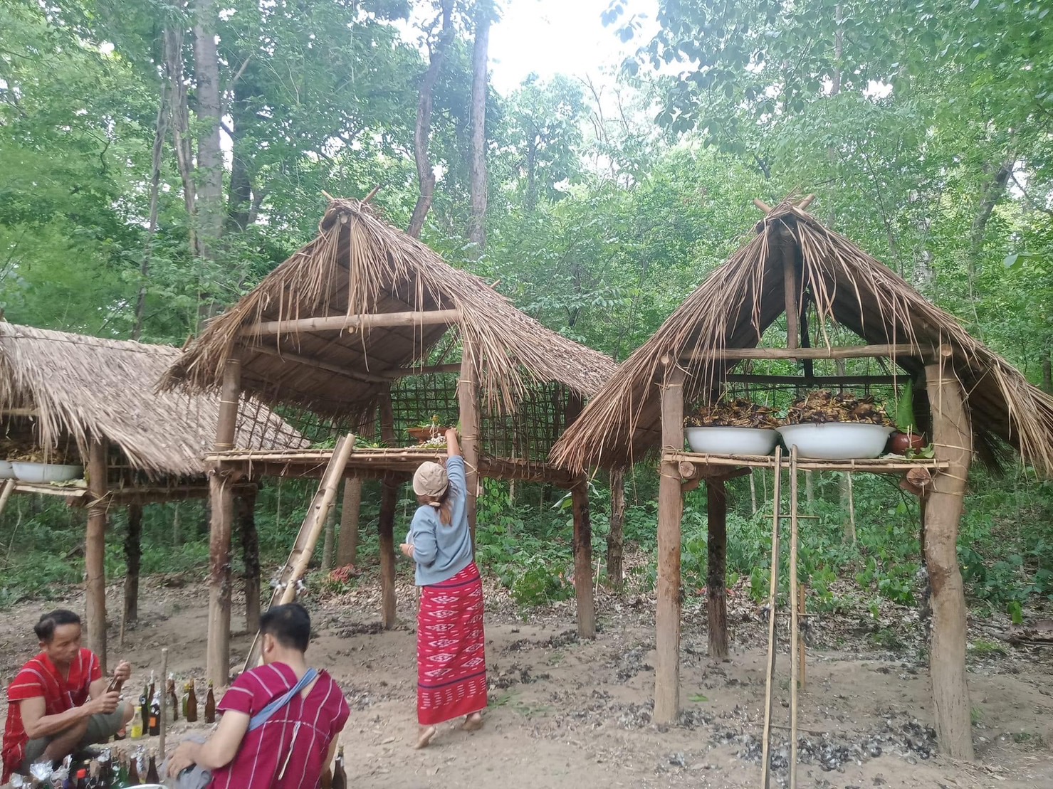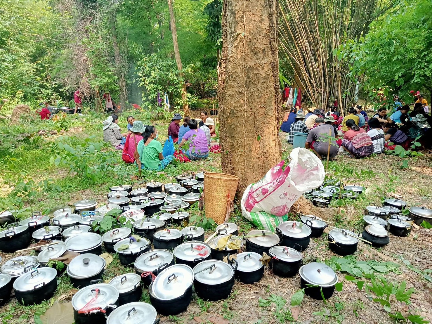 เมื่อวันที่ 23 พ.ค.2566 ที่ป่าสาธารณะในหมู่บ้านห้วยม่วงฝั่งซ้าย หมู่6 ต.แม่สอย อ.จอมทอง จ.เชียงใหม่ ทางชาวกระเหรี่ยงโผล่ง หรือ กระเหรี่ยงแดง ได้จัดประเพณีเลี้ยงผีบ้าน โดยชาวบ้านจะนำไก่ต้มมารวมกันที่ศาลเพียงตาตามประเพณีที่ยึดถือกันมาช้านานตั้งแต่สมัยบรรพบุรุษ