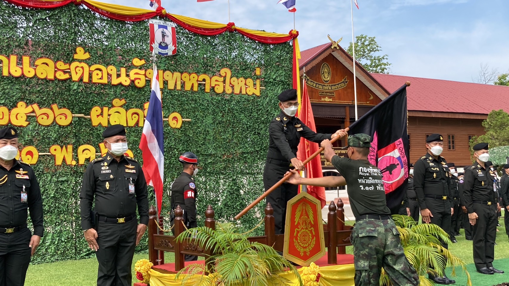 โดยมี รองผู้บัญชาการมณฑลทหารบกที่ 32 , ผู้อำนวยการโรงพยาบาลค่ายสุรศักดิ์มนตรี, ผู้บังคับกองพันทหารราบที่ 2 กรมทหารราบที่ 17, คณะผู้บังคับบัญชา และผู้บังคับหน่วยทหารในพื้นที่ พร้อมด้วยกำลังพลร่วมพิธี ในการนี้ ผู้บัญชาการ มณฑลทหารบกที่ 32 ได้ให้โอวาทพร้อมกล่าวแสดงความรู้สึกชื่นชมในความมีระเบียบวินัยที่น้องๆได้เข้าประจำการ เพียง 15 วัน แสดงออกถึงความตั้งใจจริง