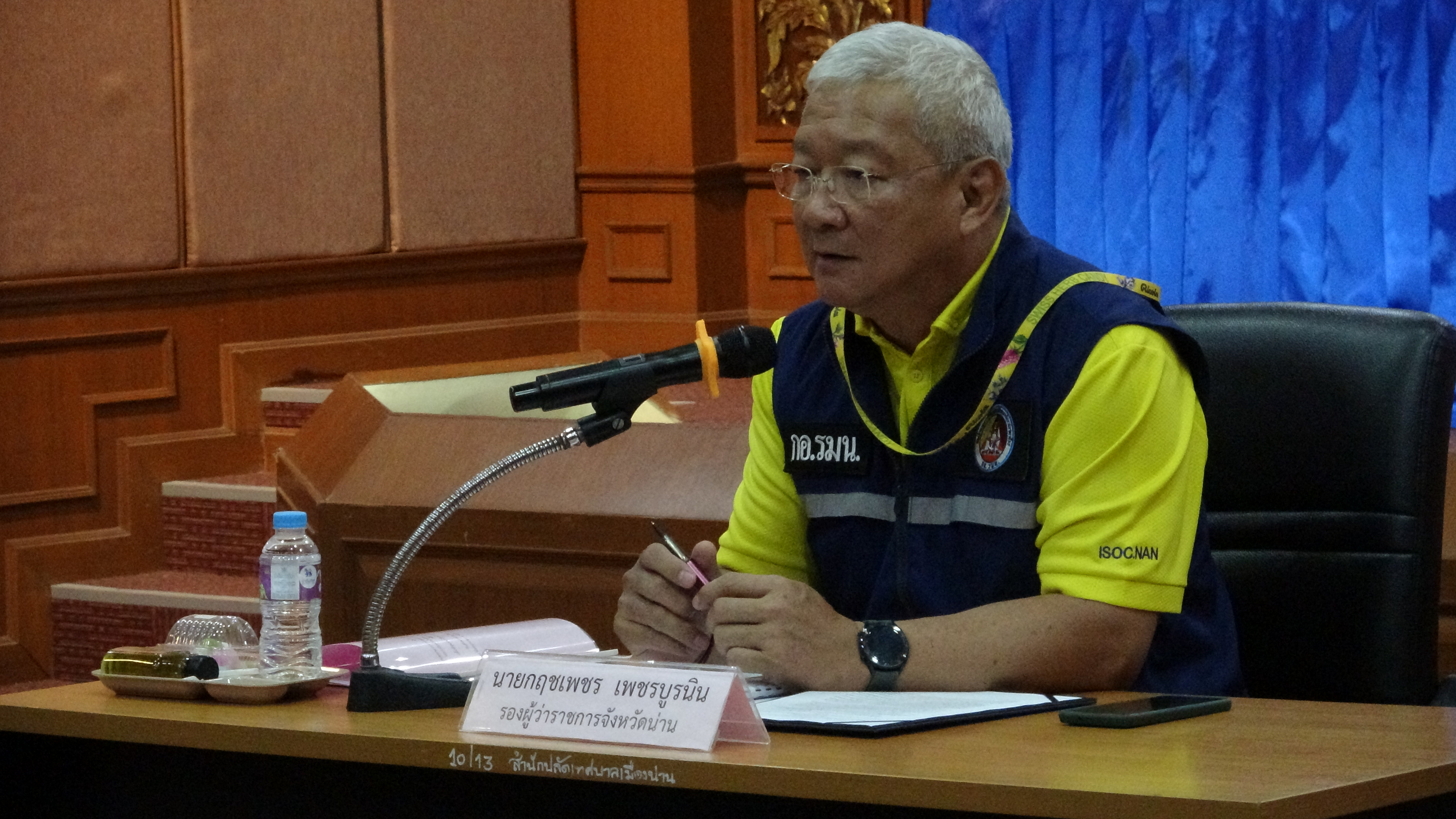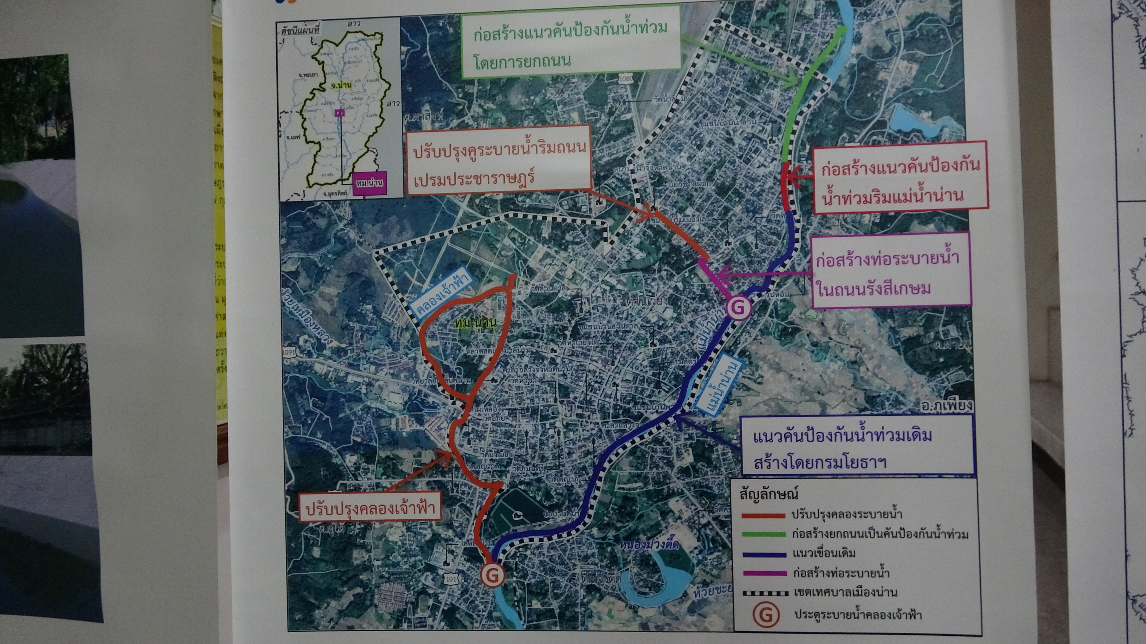 ทางด้าน นายกฤชเพชร เพชระบูรณิน รองผู้ว่าราชการจังหวัดน่าน กล่าวว่า รัฐบาลได้เล็งเห็นความสำคัญของปัญหาน้ำท่วมในพื้นที่ชุมชนในจังหวัดน่าน ซึ่งในหลายปีที่ผ่านมาได้เกิดปัญหาน้ำท่วมขึ้นในหลายๆ พื้นที่ ทำให้ประชาชนเดือดร้อนและทรัพย์สินเสียหาย รวมทั้ง ส่งผลกระทบต่อสภาพเศรษฐกิจ การท่องเที่ยวของจังหวัดน่านเป็นอย่างมากตามที่กรมโยธาธิการและผังเมือง ได้จัดให้มีการศึกษาความเหมาะสมและสำรวจออกแบบรายละเอียดระบบป้องกันน้ำท่วมและระบบระบายน้ำหลัก เพื่อบรรเทาปัญหาน้ำท่วมพื้นที่ชุมชนลุ่มน้ำภาคเหนือ ระยะที่ 4 โดยมีวัตถุประสงค์ เพื่อแนะนำโครงการ นำเสนอขอบเขตของการศึกษา ขั้นตอนการดำเนินโครงการ แนวทางในการแก้ไขปัญหาน้ำท่วม รูปแบบระบบป้องกันน้ำท่วมและระบบระบายน้ำ ให้สอดคล้องกับการใช้ที่ดินของพื้นที่ชุมชน และเพื่อแก้ไขปัญหาน้ำท่วมในภาพรวมของพื้นที่ชุมชนที่จำเป็นเร่งด่วนของลุ่มน้ำภาคเหนือ