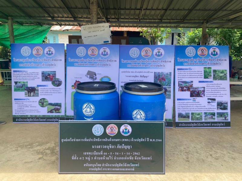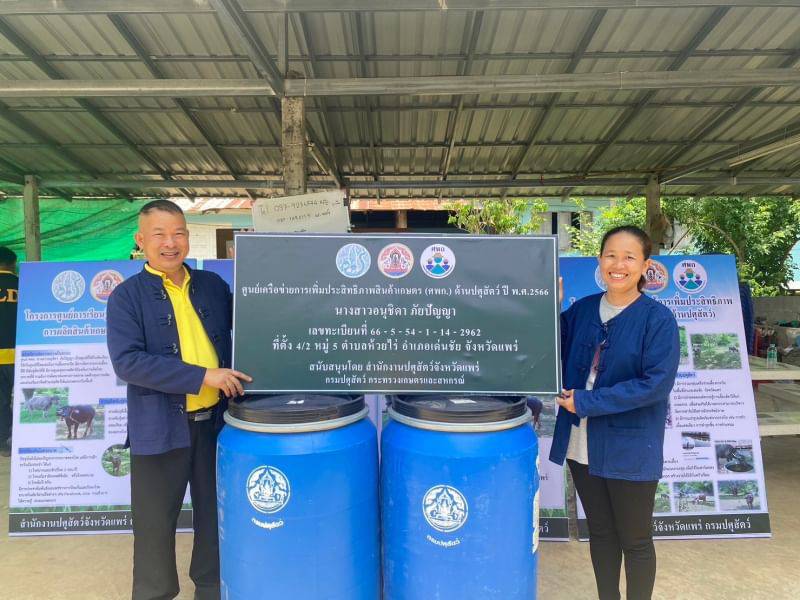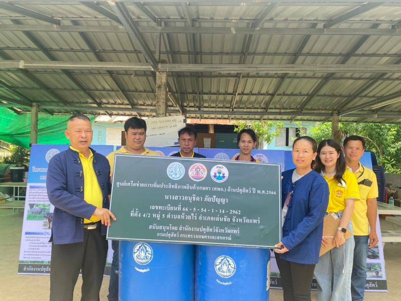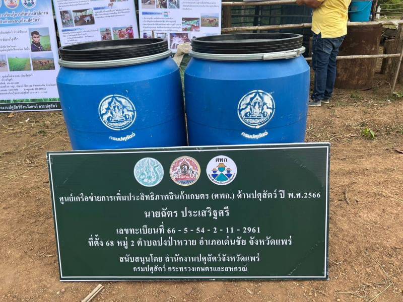 สำนักงานปศุสัตว์จังหวัดแพร่ ดำเนินการมอบปัจจัยการผลิตให้แก่ศูนย์เครือข่าย ศพก. (ด้านปศุสัตว์) ตามโครงการศูนย์เรียนรู้การเพิ่มประสิทธิภาพการผลิตสินค้าเกษตร (ศพก.) ประจำปี 2566