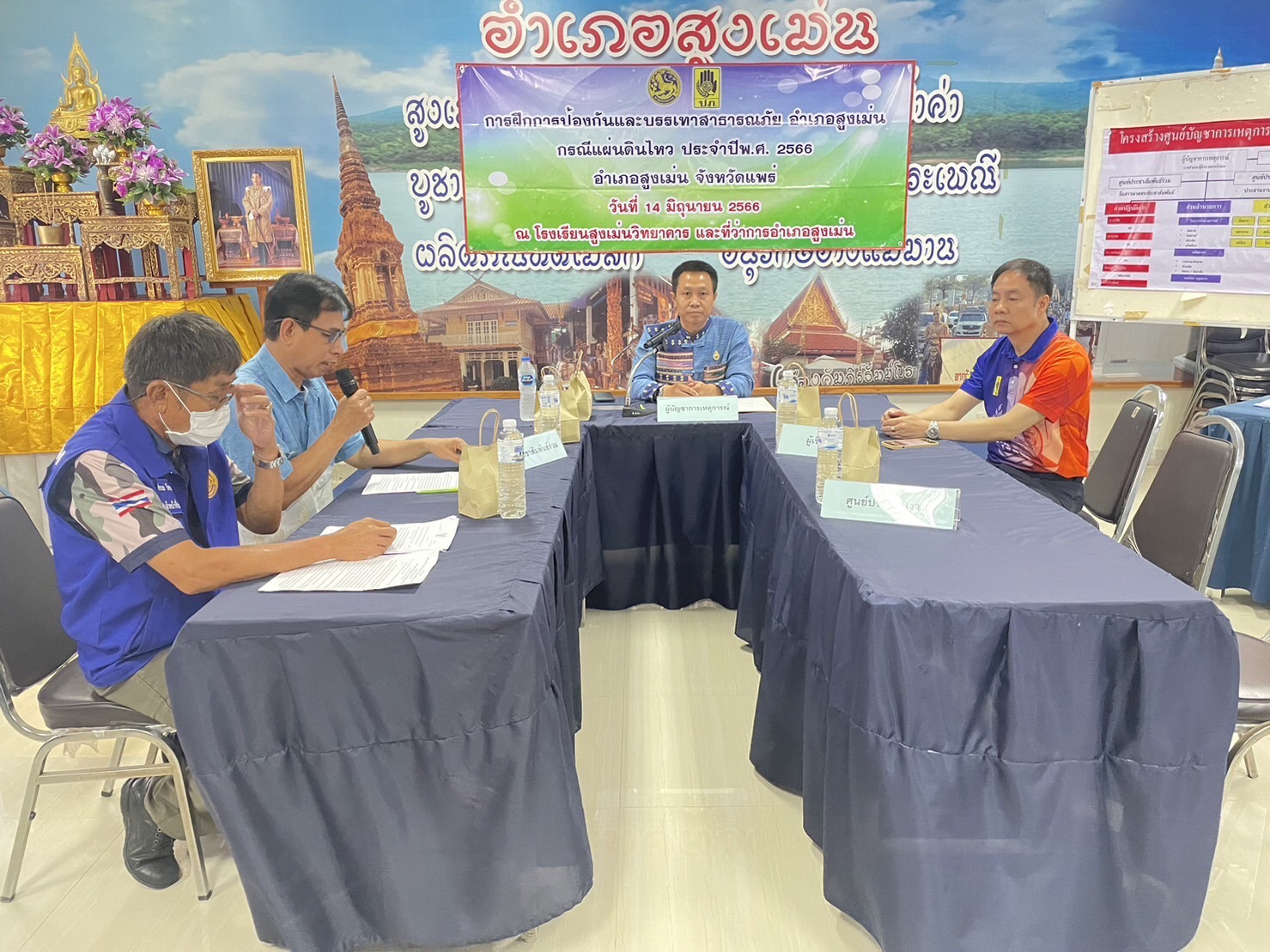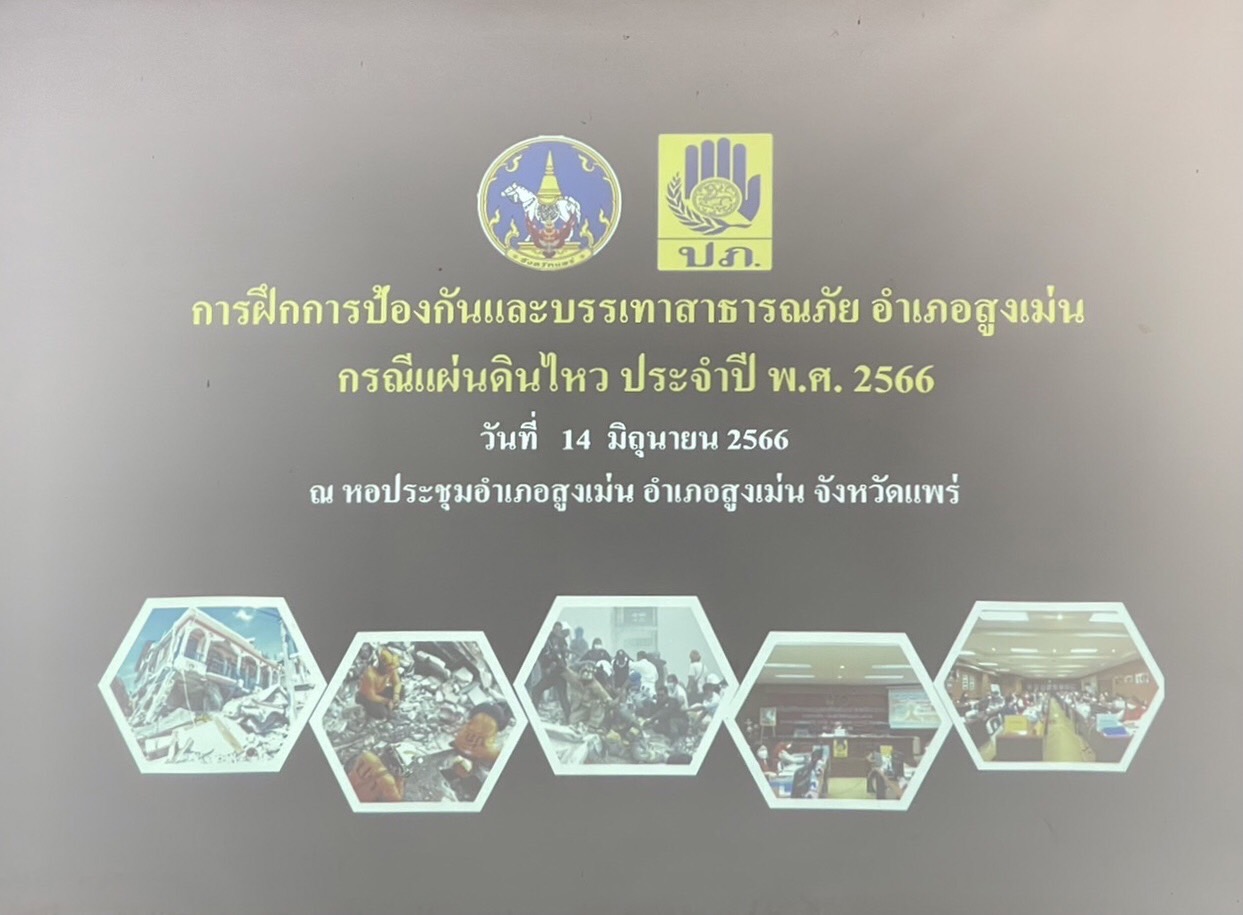 เมื่อวันพุธที่ 14 มิถุนายน พ.ศ. 2566 เวลา 09.00 น. นายนคร สายยืด นายอำเภอสูงเม่น จ.แพร่/ผู้บัญชาการเหตุการณ์อำเภอสูงเม่น ประธานในพิธีเปิดโครงการฝึกการป้องกันและบรรเทาสาธารณภัย กรณีแผ่นดินไหว ประจำปี พ.ศ. 2566 อำเภอสูงเม่น เพื่อจัดทำแผนเผชิญเหตุแผ่นดินไหว ในแต่ละระดับ ให้สอดคล้องกับคู่มือบัญชาการเหตุการณ์สำหรับผู้ว่าราชการจังหวัด กรณีแผ่นดินไหว และนำแผนการป้องกันและบรรเทาสาธารณภัยแห่งชาติ พ.ศ. 2564 – 2570 ไปสู่การปฏิบัติทุกระดับ ทดสอบประสิทธิภาพการปฏิบัติงานของเจ้าหน้าที่ตามแผนเผชิญเหตุฯ แต่ละระดับ ให้เกิดการบูรณาการทำงานร่วมกันกับทุกภาคส่วนที่เกี่ยวข้อง รวมทั้งสร้างความตระหนักและเตรียมความพร้อมภาคประชาชน ในการรับมือกับเหตุการณ์แผ่นดินไหว ในระดับจังหวัดและระดับอำเภอ โดยกรมป้องกันและบรรเทาสาธารณภัย