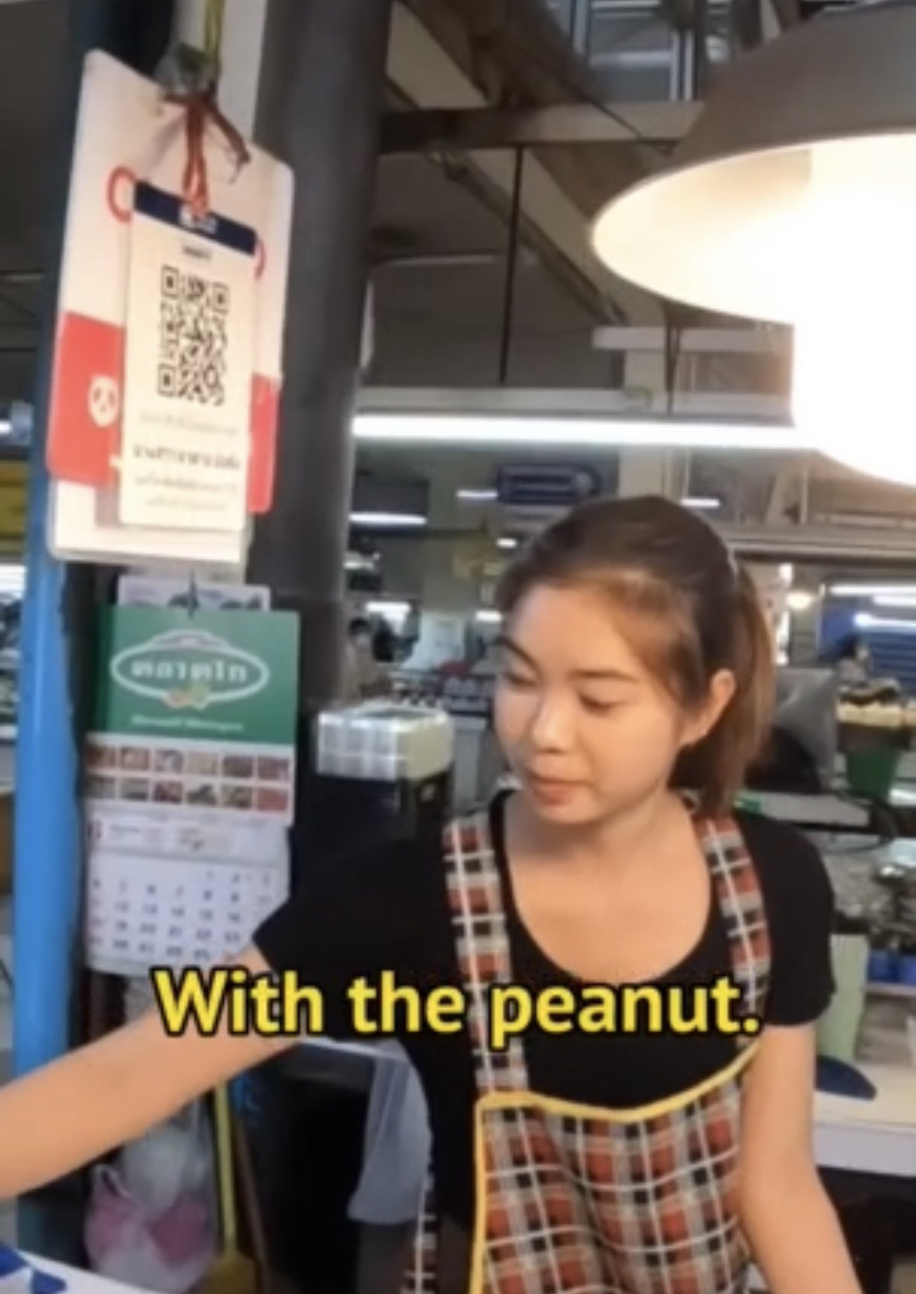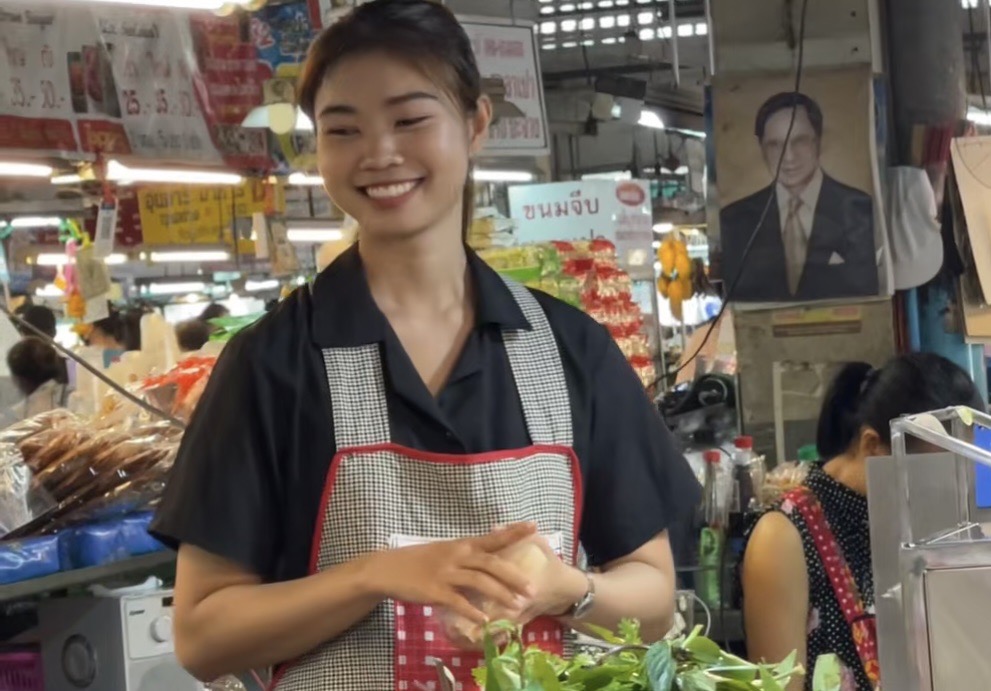 ขณะที่หลังเป็นกระแสโซเชี่ยล ผู้สื่อข่าวได้ติดตามไปที่ตลาดสิริวัฒนา หรือตลาดธานินทร์พบกับ นางสาวผณินทรา จันทน้อย หรือ น้องนิว อายุ 22 ปี กำลังจัดข้าวของอยู่ที่ร้าน ทันทีทีพบกันน้องนิวก็ทักทายด้วยรอยยิ้มพร้อมกับบอกว่าเธอคือแม่ค้าในคลิป เป็นหลานของเจ้าของร้านซึ่งเธอจะมาช่วยขายของเป็นประจำ โดยลูกค้าต่างชาติคนดังกล่าวได้มาเมื่อวันที่ 30 มิถุนายน ที่ผ่านมา ได้เดินถือกล้องมาถ่ายอาหารที่วางอยู่ที่ร้าน เธอพูดจาทักทายสวัสดีซึ่งชาวต่างชาติได้สอบถามอาหารที่วางขายอยู่ว่าคืออะไร เธอจึงบอกไปว่าเป็น “ยำแหนมมิกซ์” หลังจากนั้นชาวต่างชาติคนนี้ก็สั่งยำแหนม พร้อมกับสอบถามเรื่องเวลาร้านเปิดเผื่อมีโอกาสจะได้แวะกลับมาอุดหนุนอีก