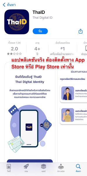 4.ไม่ดาวน์โหลด หรือติดตั้งโปรแกรม หรือแอปพลิเคชันที่ผู้อื่นส่งมาให้โดยเด็ดขาด แม้จะเป็นโปรแกรมที่รู้จักก็ตาม เพราะอาจเป็นแอปพลิเคชันปลอม โดยหากต้องการใช้งานแอปพลิเคชัน ThaID ให้ทำการติดตั้งผ่าน App Store หรือ Play Store เท่านั้น