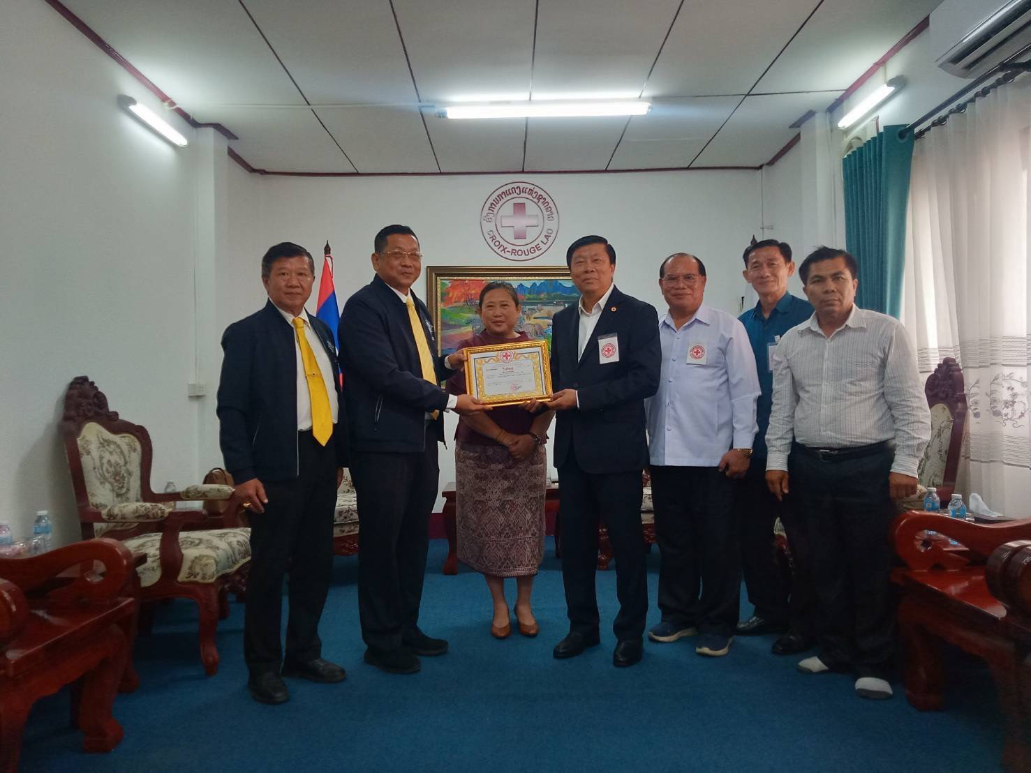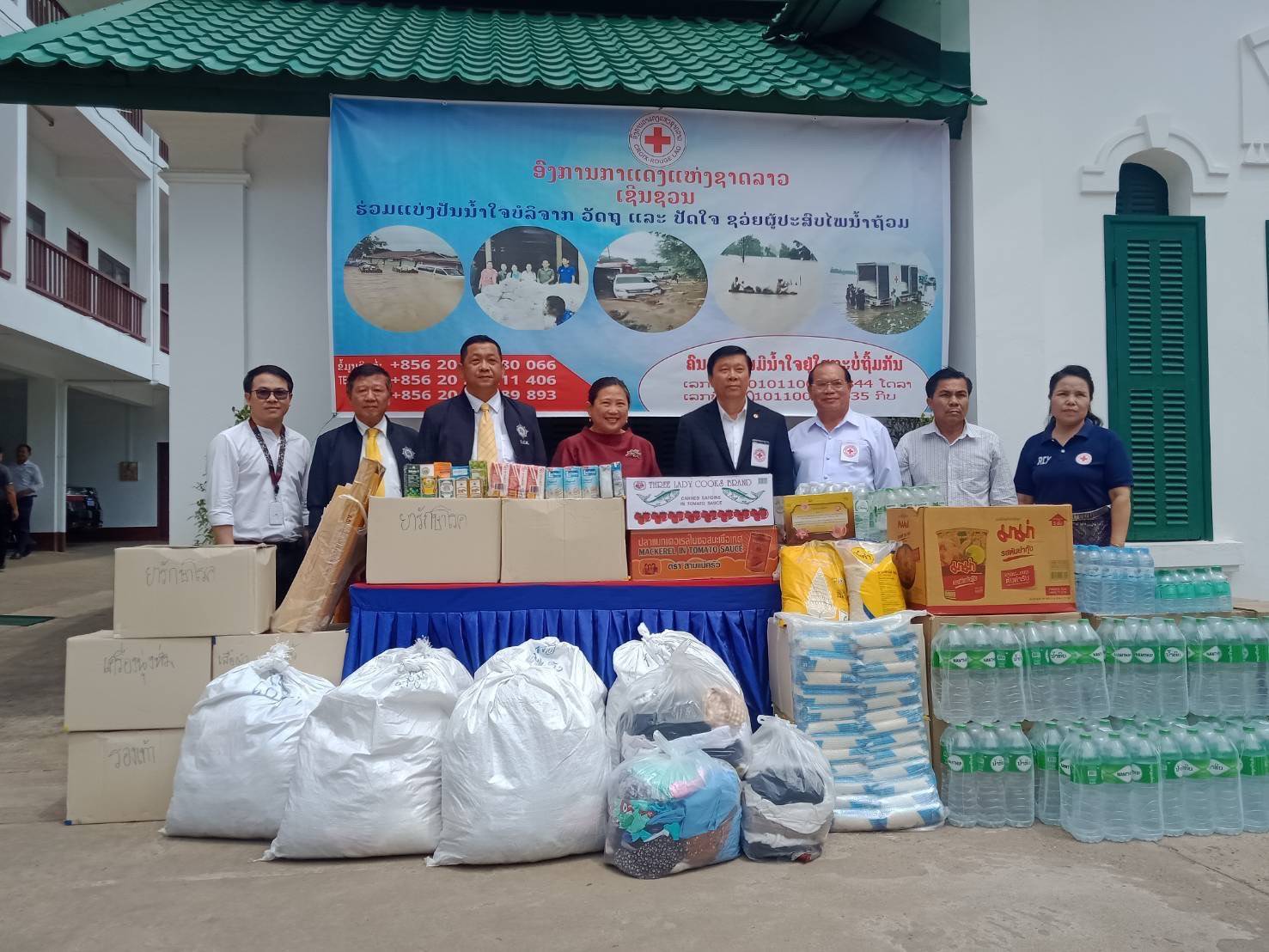 วันที่ 24 สิงหาคม 2566 นางสาวมรกต ศรีสวัสดิ์ เอกอัครราชทูต ณ เวียงจันทร์ ร่วมกับสำนักงานคณะกรรมการป้องกันและปราบปรามยาเสพติด (สำนักงาน ป.ป.ส.) โดยนายวิชัย ไชยมงคล เลขาธิการ ป.ป.ส. มอบหมายให้นายภิญโญ โฆสิต ผอ.ปปส.ภาค 4 นายไกรเลิศ ดาวเรือง ผอ.ปปส.ภาค 3 เป็นผู้แทนเข้าร่วมการส่งมอบสิ่งของบริจาคจากน้ำใจพี่น้องชาวไทยเพื่อช่วยเหลือพี่น้องชาวลาวที่ประสบอุทกภัย ณ องค์การกาแดงแห่งชาติลาว โดยมี รศ.ดร.พูทอน เมืองปาก ประธานองค์การกาแดงฯ เป็นผู้แทนรับมอบสิ่งของบริจาคเพื่อนำไปมอบให้ผู้ประสบภัยชาวลาวต่อไป โดยสิ่งของที่บริจาคประกอบด้วย เสื้อผ้า น้ำดื่ม ข้าวสาร ปลากระป๋อง อาหารแห้ง นมถั่วเหลือง เครื่องใช้ ยารักษาโรค และอื่น ๆ