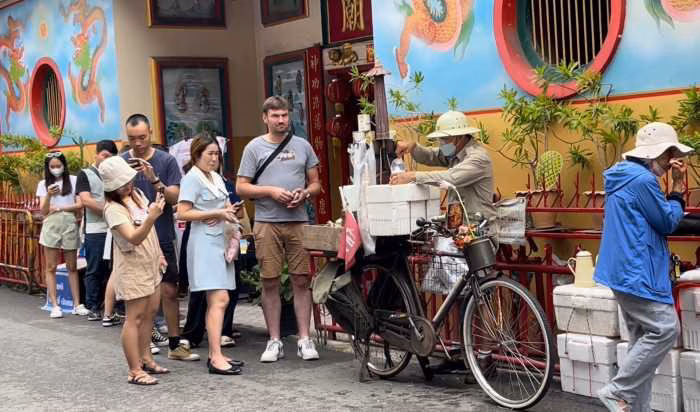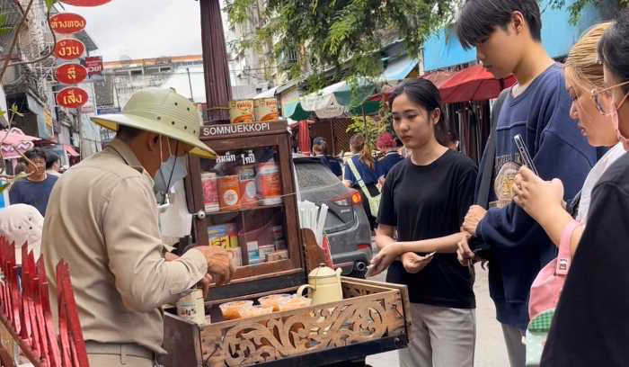 “สมนึก โกปี๊” ชาเย็นในตำนาน ขายด้วยรถจักรยานคันเดียว คนยืนต่อแถวรอยาวเหยียดแห่ทำคอนเทนต์ และถ่ายภาพลงโซเชี่ยล ด้านเจ้าของร้านเผยล้มลุกคลุกคลานสู้ชีวิต หวังเศรษฐกิจไทยฟื้นตัวดีขึ้น