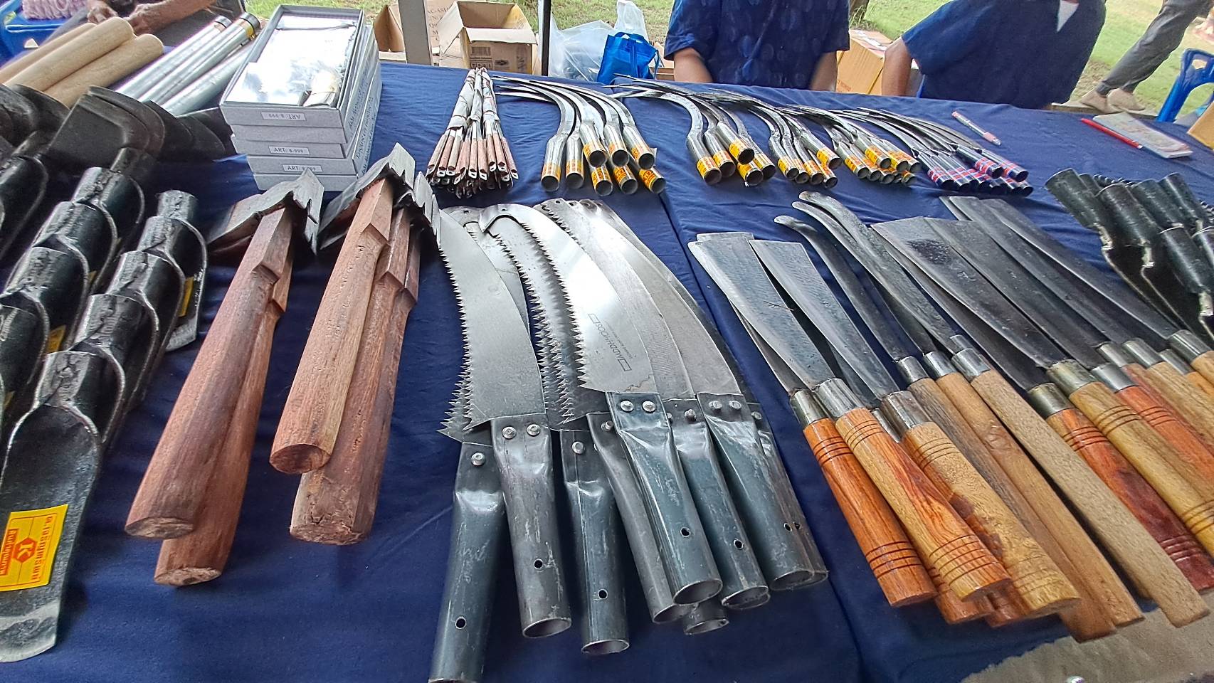 ผลิตภัณฑ์จากเหล็ก ผลิตภัณฑ์ทางการเกษตร มีด พร้า จอบ เสียม เคียวผลิตภัณฑ์จากผ้า อาทิเช่น กางเกงขาสั้น ผ้ามัดย้อม ผ้าอีโคปริ้น กระเป๋าผ้า หมวก จำหน่ายในราคาโรงงาน