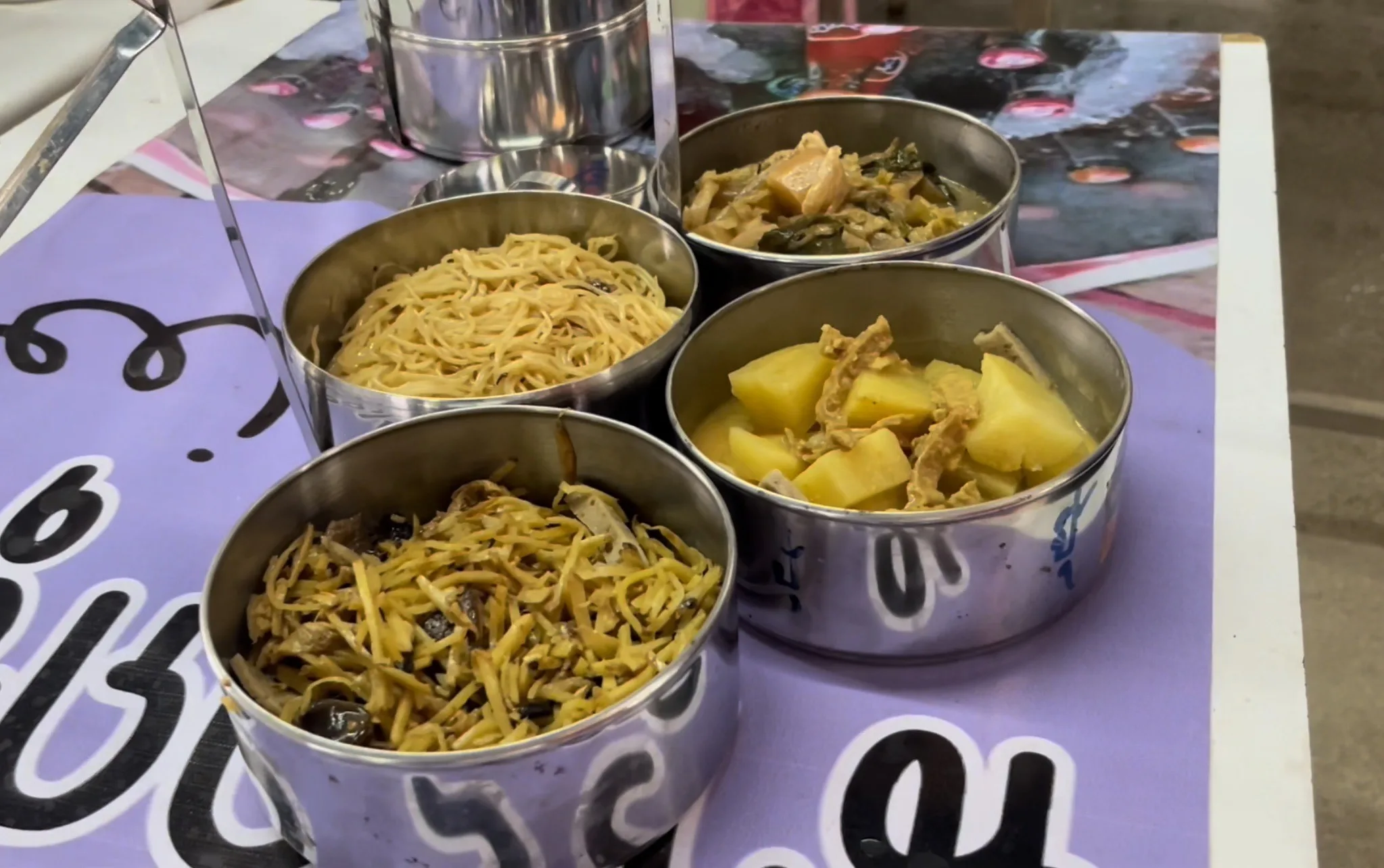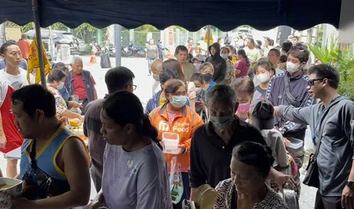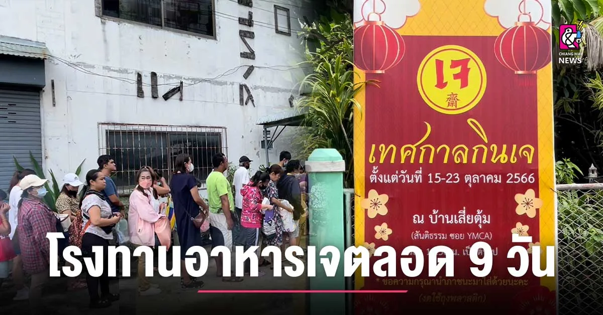 เชียงใหม่ บรรยากาศกินเจคึกคัก ย่านสันติธรรม จัดโรงทานอาหารเจ แจกจ่ายชาวบ้านและผู้สนใจกินเจตลอด 9 วัน ประชาชนต่อแถวยาวรอรับอาหาร พร้อมเชิญชวนทุกคนแวะเวียนมาได้