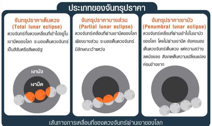 สำหรับปรากฏการณ์จันทรุปราคาที่จะสังเกตเห็นได้ในประเทศไทยครั้งถัดไป เป็น “จันทรุปราคาเต็มดวง” ในคืนวันที่ 7 ถึงเช้ามืดวันที่ 8 กันยายน 2568