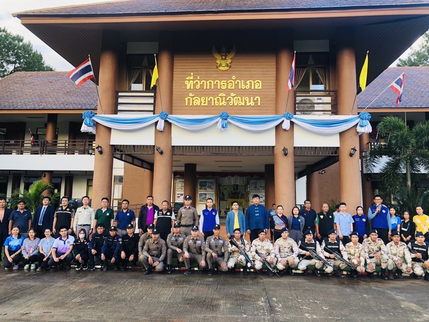 วันนี้พุธที่ 1 พ.ย. 66 เวลา 17.00 น. นายวรศักดิ์ พานทอง นายอำเภอกัลยาณิวัฒนา เป็นประธาน สนธิกำลังทุกฝ่าย “เปิดปฏิบัติการ Kick Off ตามนโยบายการจัดระเบียบสังคมและปราบปรามผู้มีอิทธิพล” สืบเนื่องจากรัฐบาลและกระทรวงมหาดไทย ได้มีนโยบายสำคัญด้านการจัดระเบียบสังคมและปราบปรามผู้มีอิทธิพล การรักษาความสงบเรียบร้อย การป้องกันและแก้ไขปัญหายาเสพติด การป้องกันและปราบปรามการตัดไม้ทำลายป่าและทรัพยากรธรรมชาติ การแก้ไขปัญหาแรงงานต่างด้าวและการค้ามนุษย์ การป้องกันและปราบปรามการละเมิดทรัพย์สินทางปัญญา การพนัน รวมถึงการตรวจตราการครอบครองและพกพาอาวุธปืน สถานบริการหรือสถานประกอบการที่คล้ายกับสถานบริการ และอาชญากรรมต่างๆ