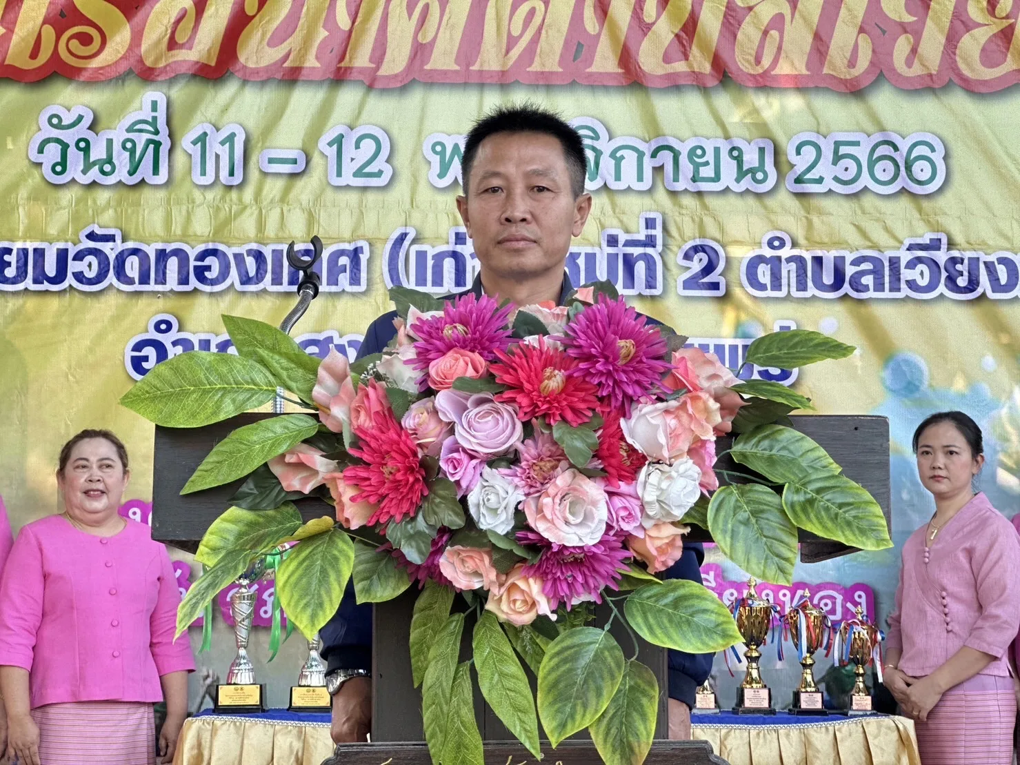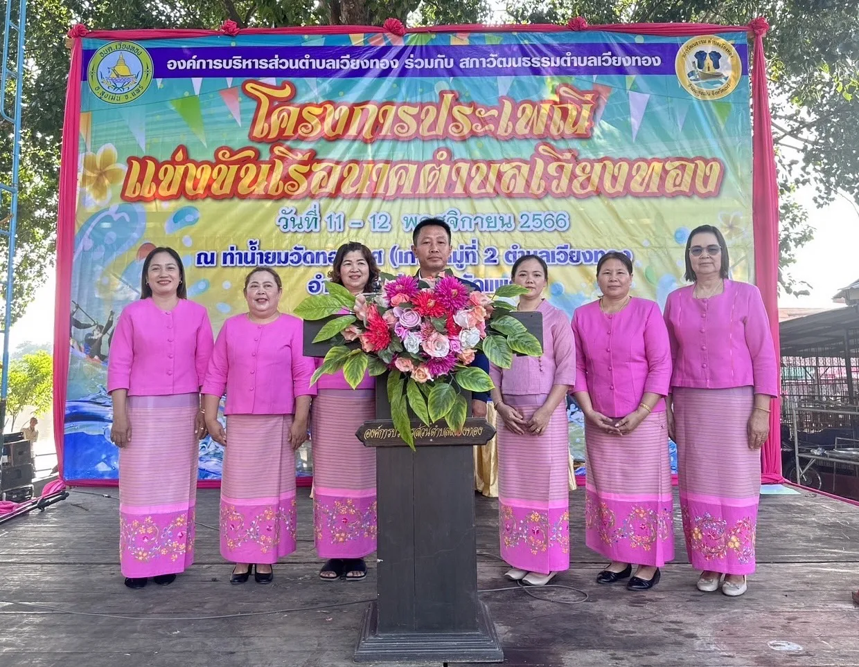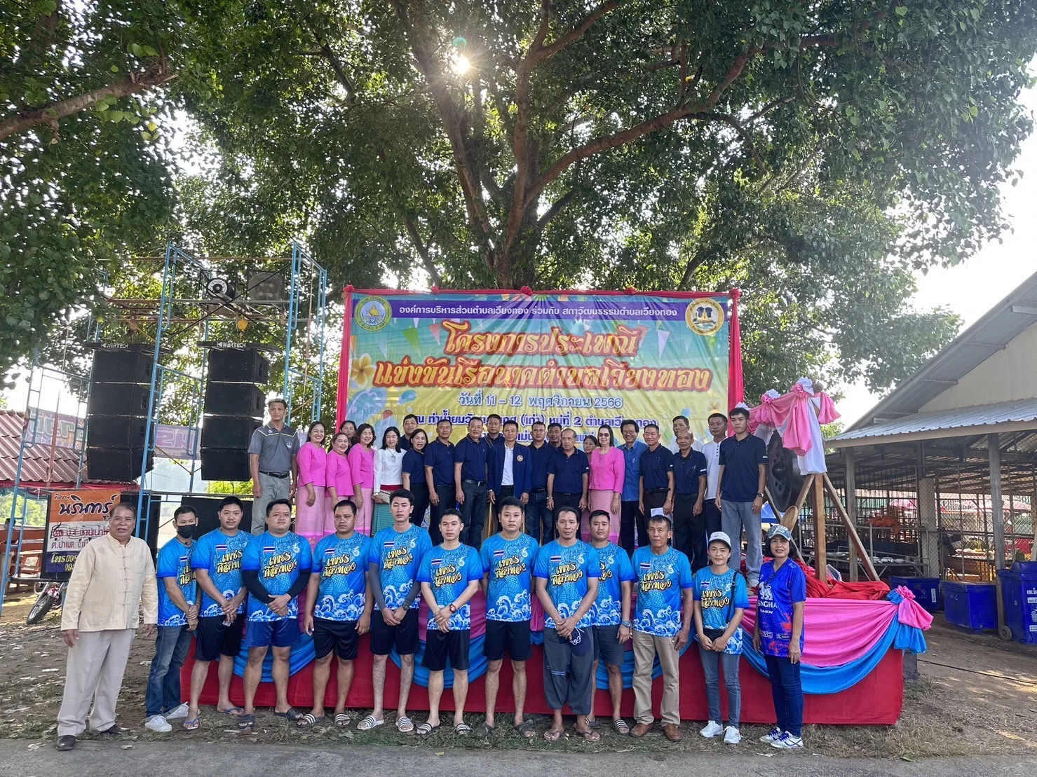 โดยมีนายเสรี เวียงนาค นายกองค์การบริหารส่วนตำบลเวียงทอง กล่าวต้อนรับ นายพงษ์ศักดิ์ แก้วธรรมานุกูล ประธานสภาวัฒนธรรมตำบลเวียงทอง กล่าวรายงาน พร้อมด้วย ผู้บริหาร,เจ้าหน้าที่องค์การบริหารส่วนตำบลเวียงทอง ชมรมกำนันผู้ใหญ่บ้านตำบลเวียงทอง นักกีฬาแข่งเรือพายและพี่น้องชาวตำบลเวียงทอง เข้าร่วมพิธีเปิดฯ ในครั้งนี้ ภายในงานมีพิธีเจริญพระพุทธมนต์ ทำบุญตักบาตรข้าวสารอาหารแห้ง ถวายเครื่องสังฆทาน ถวายผ้าป่าสามัคคี พร้อมมีการแสดงดนตรีพื้นบ้านตำบลเวียงทองและการแข่งขันการแข่งเรือนาคตำบลเวียงทอง สำหรับการจัดงานในปีนี้ มีเรือนาคเข้าร่วมแข่งขันจำนวน 6ลำ โดยแบ่งตามศรัทธาวัดในตำบลเวียงทอง ได้แก่ ศรัทธาวัดไชยามาตย์ ศรัทธาวัดทองเกศ ศรัทธาวัดน้ำบ่อ ศรัทธาวัดโพธิสุนทร ศรัทธาวัดเขื่อนคำลือ และศรัทธาวัดผาสุก นอกจากนี้ ยังมียังมีการแข่งขันเรือเล็ก (เรืออิป๋อง) และการแข่งขันมวยทะเล จำนวน 12 หมู่บ้าน ซึ่งการแข่งขันจัดขึ้นระหว่างวันที่ 11-12 พฤศจิกายน 2566