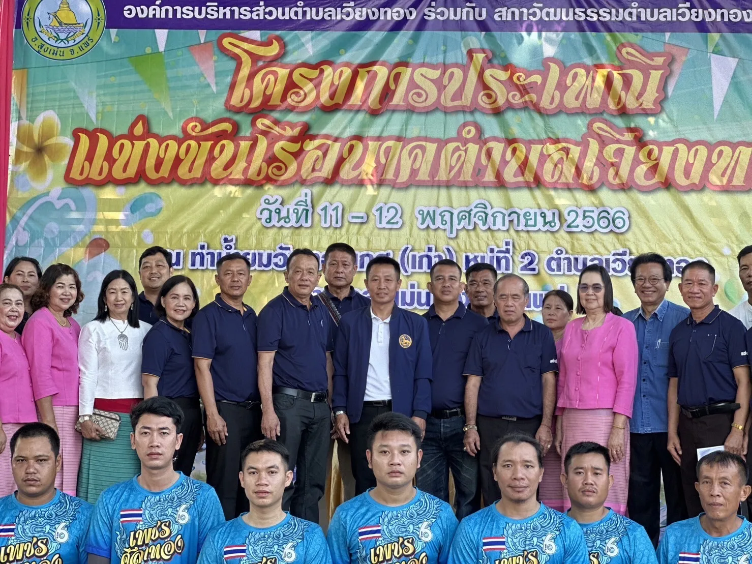 เมื่อวันเสาร์ที่ 11 พฤศจิกายน ๒๕๖๖ เวลา 08.30 น. นายนคร สายยืด นายอำเภอสูงเม่น ประธานในพิธีเปิดงานประเพณีแข่งเรือนาคตำบลเวียงทอง ตามโครงการประเพณีแข่งขันเรือนาคตำบลเวียงทอง ประจำปี พ.ศ. 2566 เพื่อส่งเสริมอนุรักษ์ สืบสานศิลปวัฒนธรรมประเพณีของตำบลเวียงทองให้คงอยู่สืบไป และเป็นการเสริมสร้างความรัก ความสามัคคี ความมีวินัย ในหมู่คณะ ส่งเสริมและปลูกจิตสำนึกให้เยาวชนและประชาชนตำบลเวียงทองได้มีส่วนร่วมในการออกกำลังกาย มีน้ำใจเป็นนักกีฬา รู้แพ้ รู้ชนะ รู้อภัย อีกทั้งยังเป็นการส่งเสริมการท่องเที่ยวและเสริมสร้างเอกลักษณ์ของตำบลเวียงทอง ให้เป็นที่รู้จักของประชาชนทั่วไป