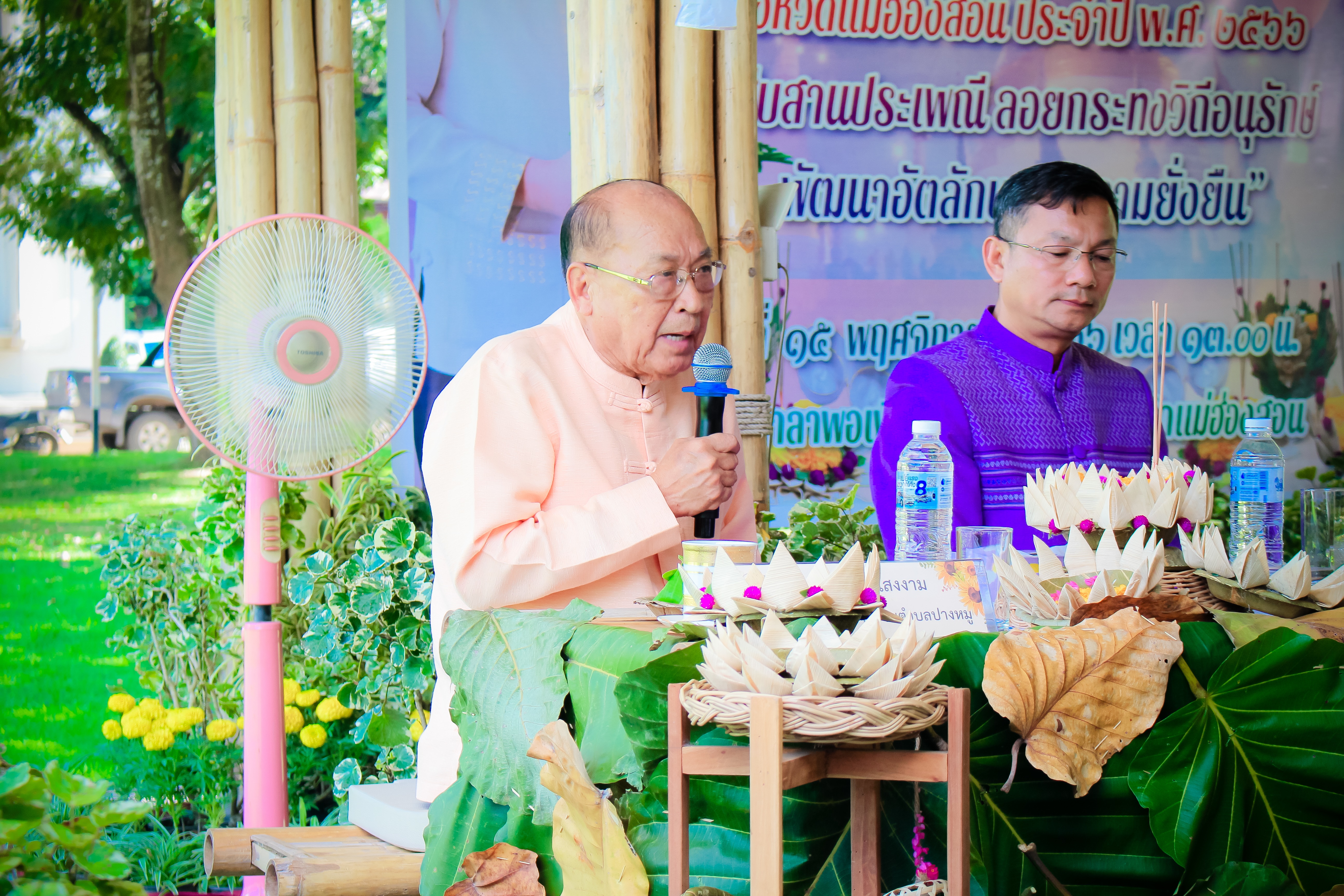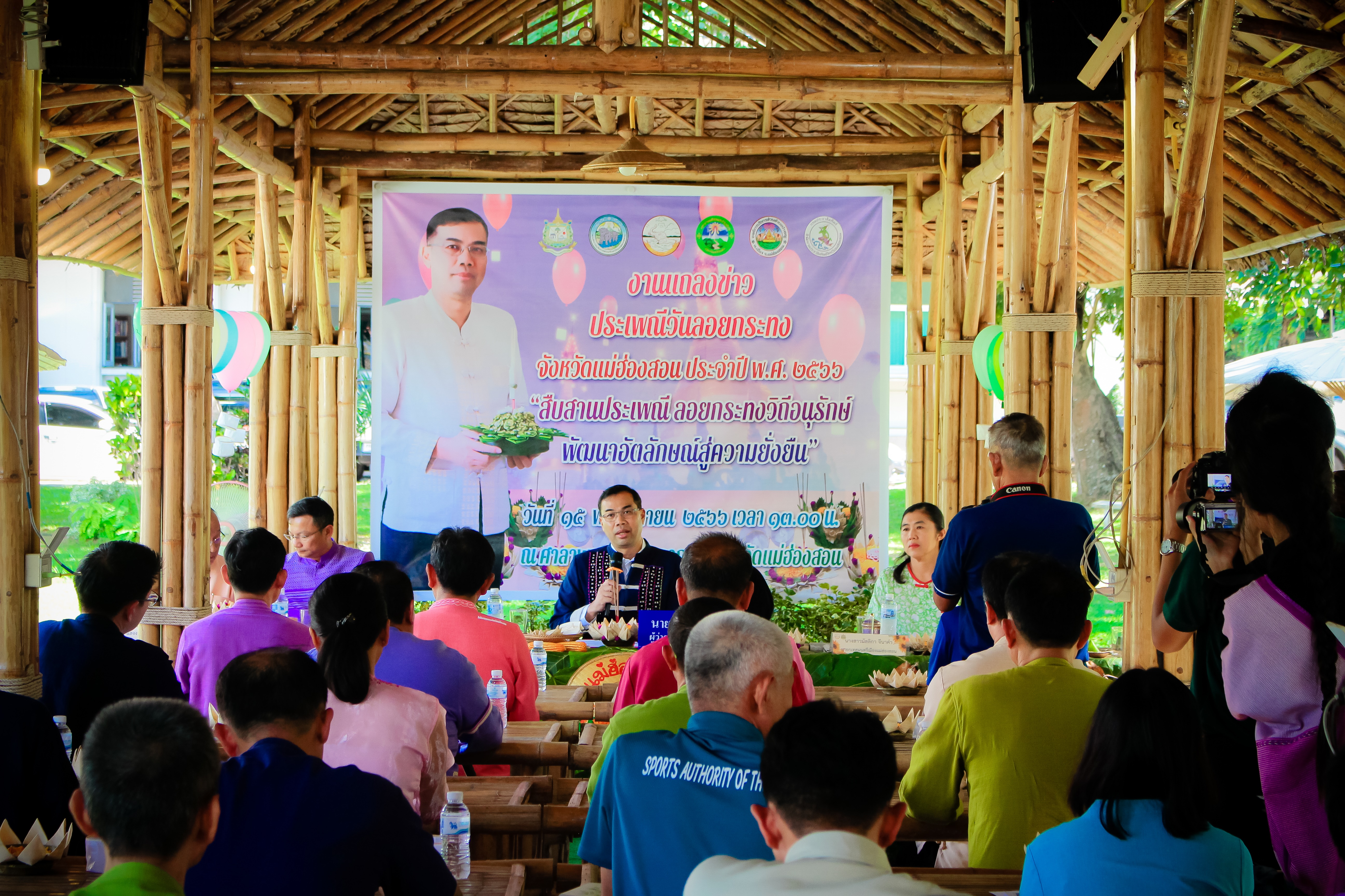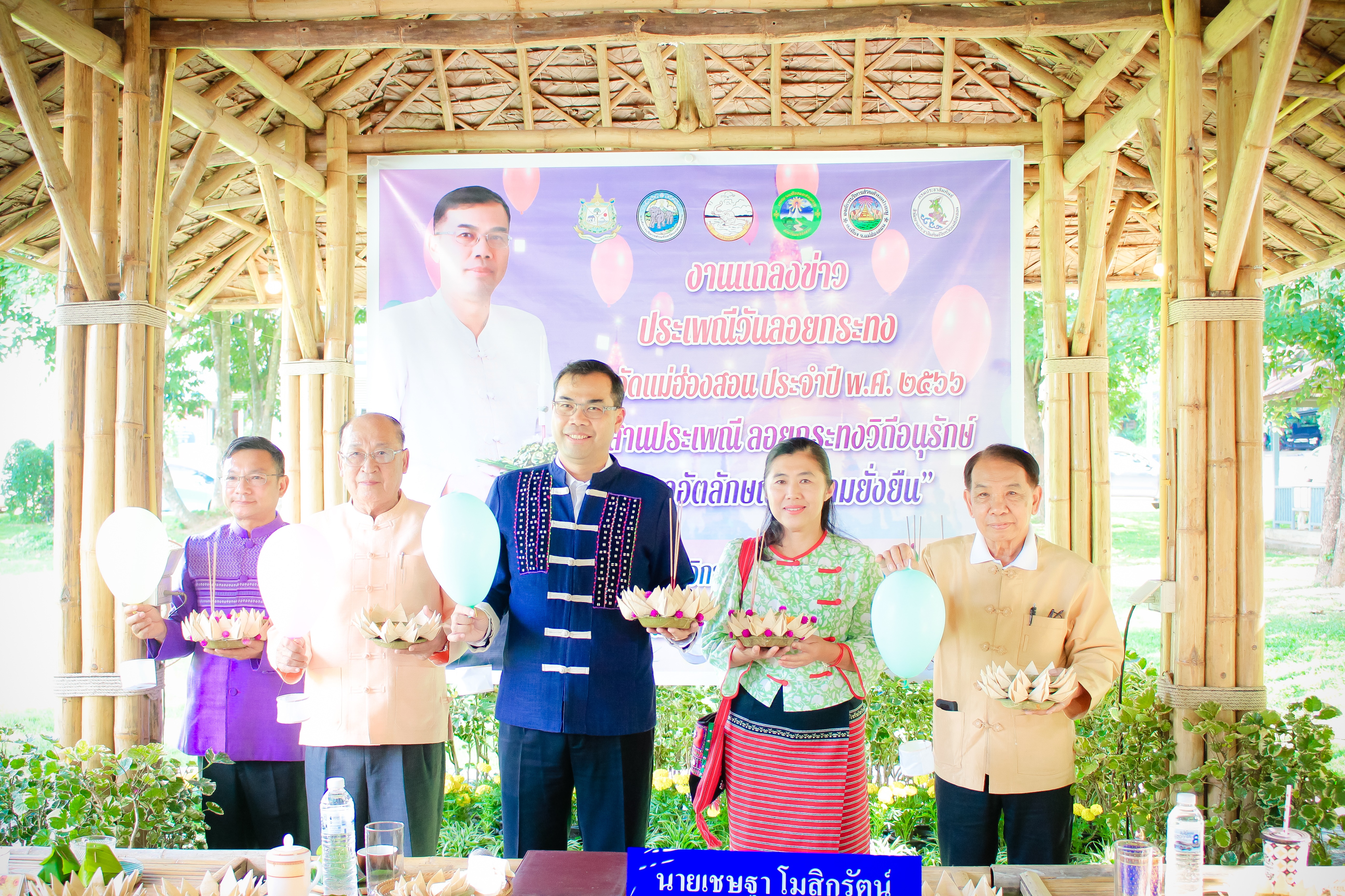 ช่วงบ่ายวันที่ 15 พฤศจิกายน 2566 ณ ศาลาพอเพียง สนามหน้าศาลากลางจังหวัดแม่ฮ่องสอน จังหวัดแม่ฮ่องสอน นำโดย นายเชษฐา โมสิกรัตน์ ผู้ว่าราชการจังหวัดแม่ฮ่องสอน พร้อมด้วย นายประเสริฐ จิตต์พลีชีพ รองผู้ว่าราชการจังหวัดแม่ฮ่องสอน นายอุกฤษฎ์ แสงงาม นายกองค์การบริหารส่วนตำบลปางหมู นางสาวมัลลิกา จีนาคำ นายกเทศมนตรีเมืองแม่ฮ่องสอน และนายสุรศักดิ์ ป้อมทองคำ ผู้ทรงคุณวุฒิ ร่วมแถลงข่าว การจัดงานประเพณีลอยกระทง ประจำปี 2566 ภายใต้แนวคิดกิจกรรมประเพณีลอยกระทง ที่เป็นมิตรกับสิ่งแวดล้อม และส่งเสริมการมีส่วนร่วมในการอนุรักษ์ทรัพยากรธรรมชาติอย่างยั่งยืนเพื่อลดของเสีย ที่ย่อยสลายยาก