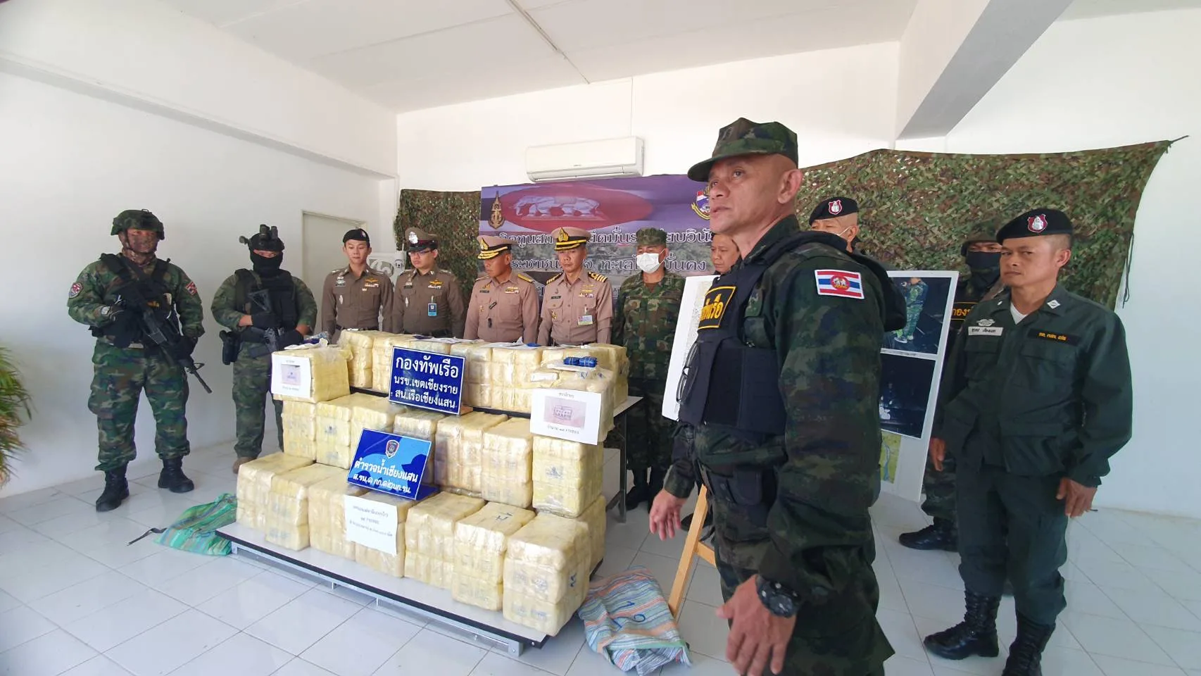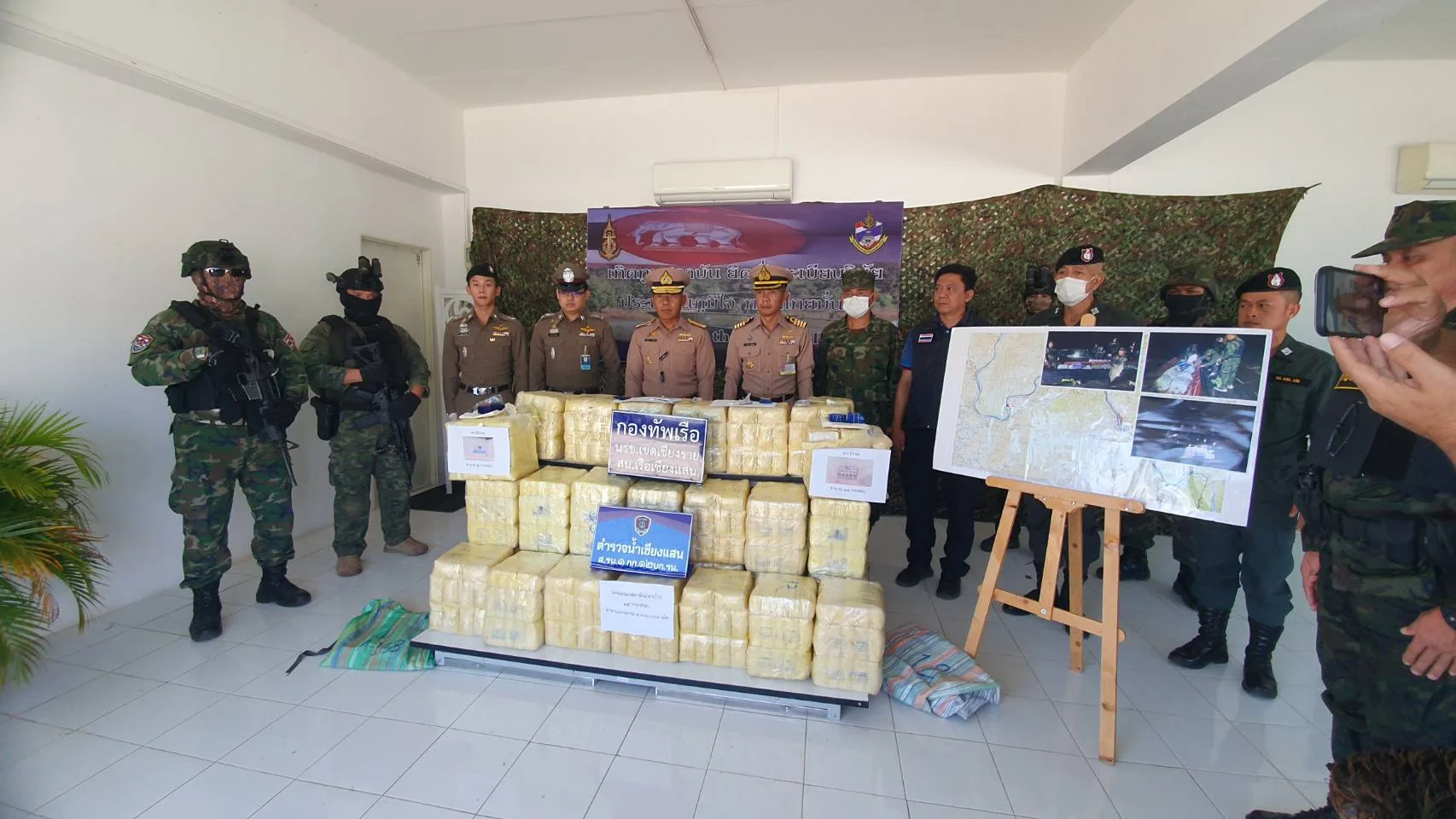 ต่อมา พล.ร.ต.นรินทร์ ขาวเจริญ ผบ.นรข. (ผู้บัญชาการหน่วยเรือรักษาความสงบเรียบร้อยตามลำแม่น้ำโขง) ได้รุดมายังที่เกิดเหตุเพื่อตรวจสอบสถานการณ์และของกลาง พร้อมให้ขวัญกำลังใจแก่กำลังพลผู้ปฏิบัติหน้าที่ ภายหลังรับทราบสถานการณ์และรายงาน พล.ร.ต.นรินทร์ จึงได้เร่งให้นโยบายคุมเข้มแก่กำลังฟลตามแนวพื้นที่จังหวัดเชียงราย