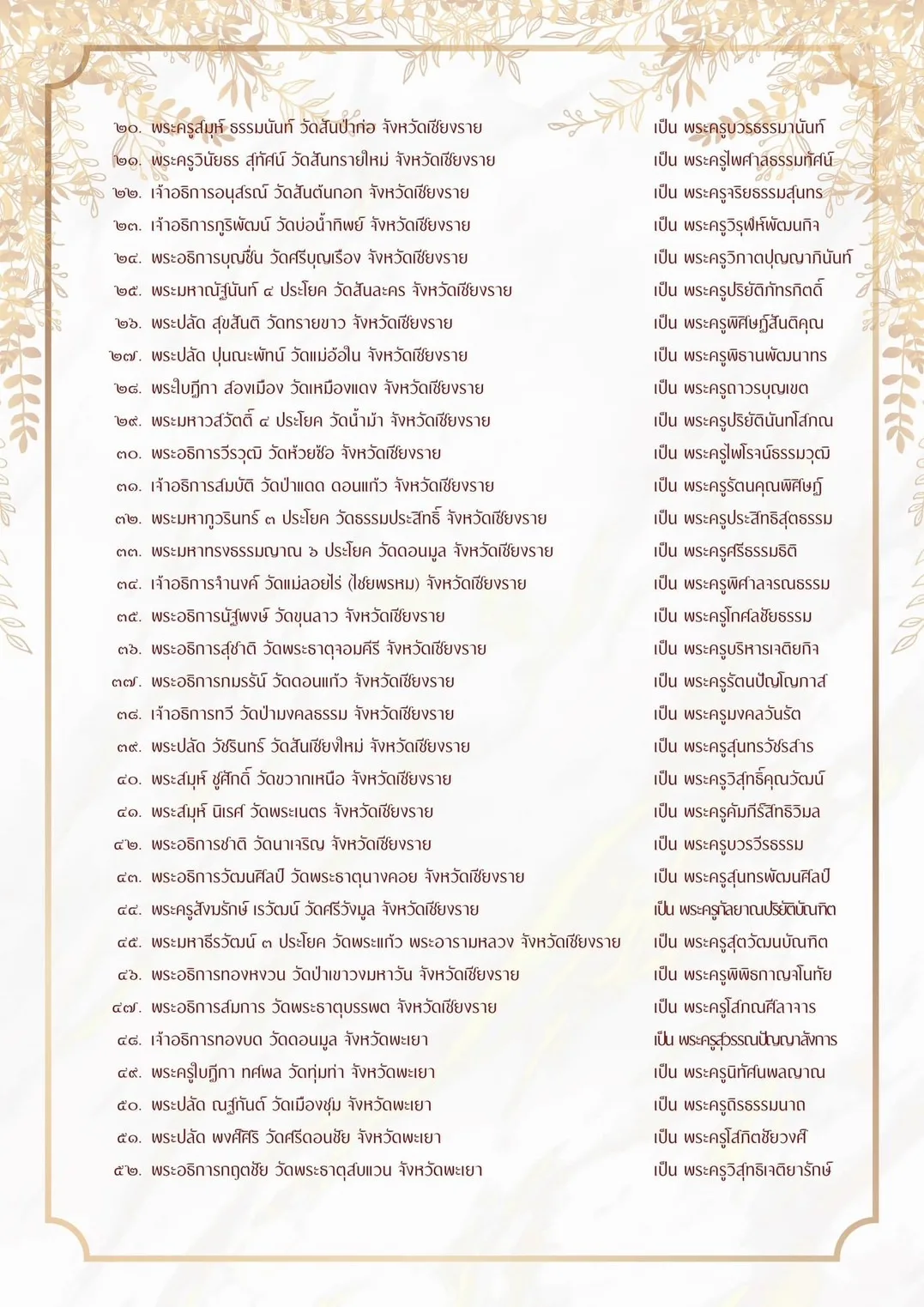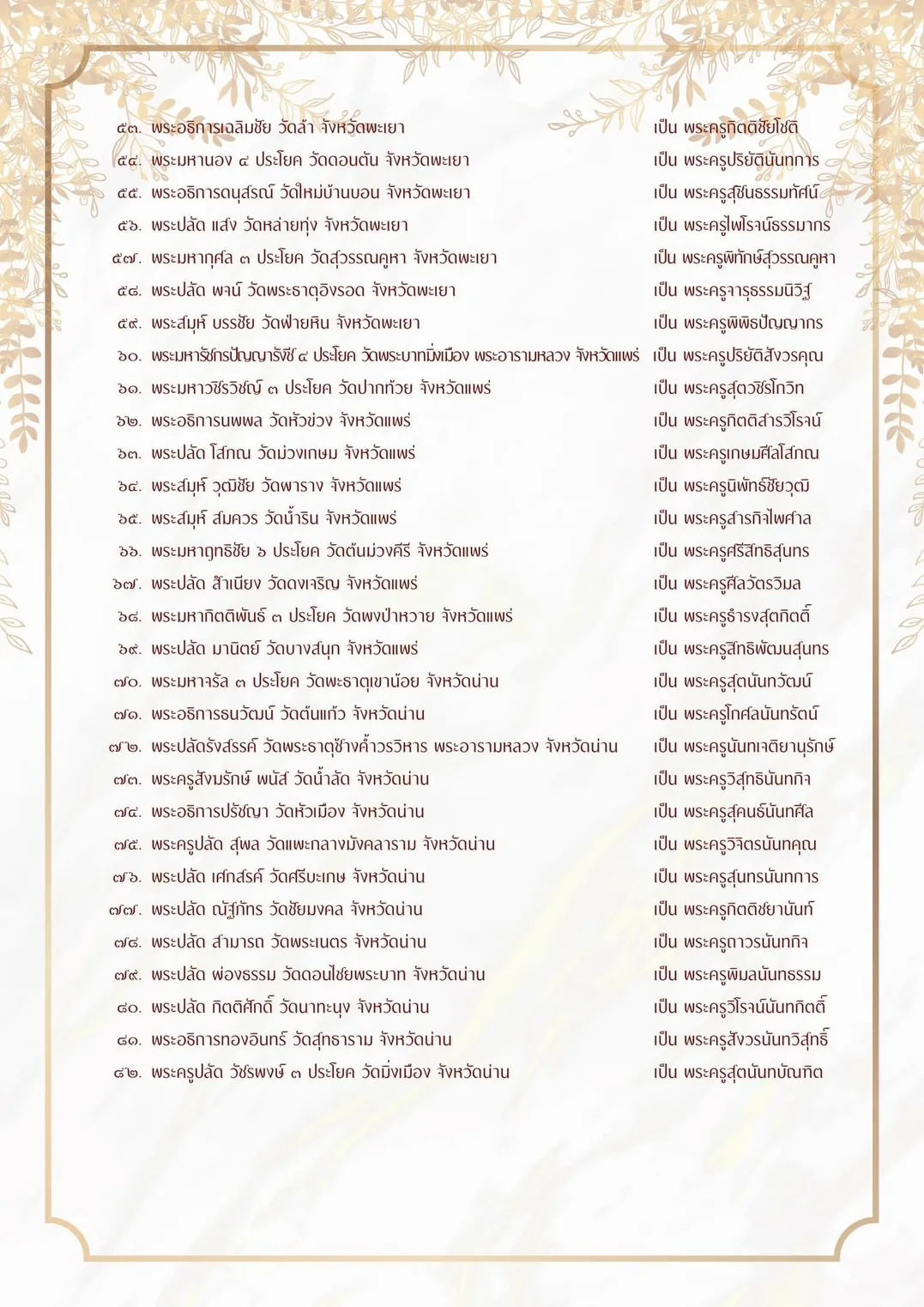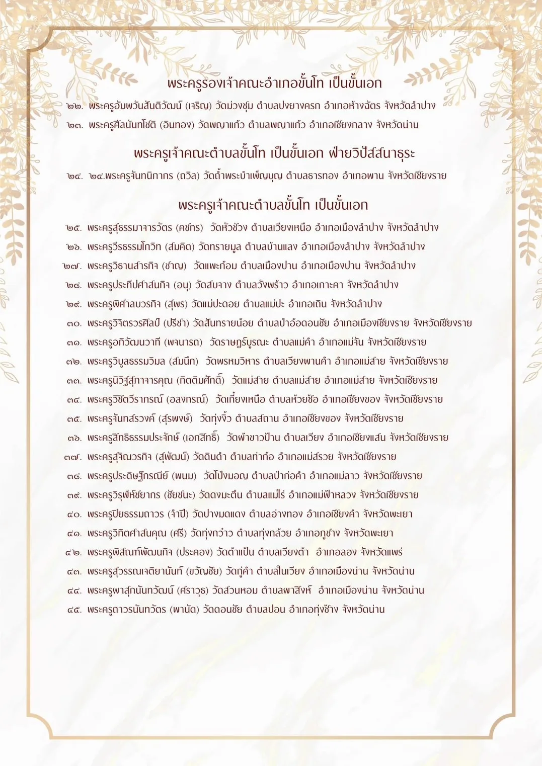 ผู้สื่อข่าวรายงานว่ากองงานเลขานุการคณะสงฆ์ ภาค 6 ได้ขอถวายมุทิ ตาเจ้าคณะพระสังมาธิการ ในเขตปกครองคณะสงฆ์ภาค 6 (ลำปาง เชียงราย พะเยา แพร่ น่าน) ที่ได้รับพระราชทานสมณศักดิ์เป็นพระครูสัญญาบัตร จำนวน 82 รูป ตามประกาศ ในราชกิจจานุเบกษา ประกาศ ณ วันที่ 5 ธันวาคม พุทธศักราช 2566 และเจ้าคณะ พระสังมาธิการได้รับการเลื่อนสมณศักดิ์ จำนวน 69 รูป ตามมติมหาเถรสมาคม ประกาศ