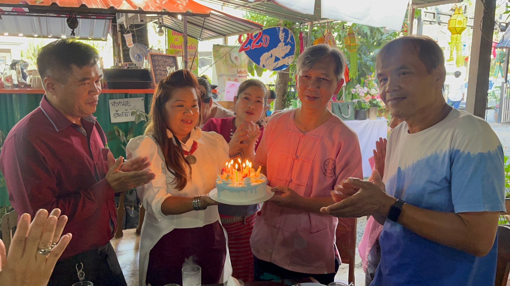 นายจรัล เจ้าของร้านลาบต้นยาง บอกว่า ยอมรับว่า วันนี้ลูกค้าเข้ามารับประทานอาหารที่ร้านจำนวนมาก จนแน่นร้าน และยังตรงกับวันเกิดของตนด้วย วันนี้ผักกับลาบจึงหมด ทางน้องสาวคือ พี่เล็ก ต้องลงมือไปเก็บผักด้วยตัวเองเพื่อนำมาให้ลูกค้า ก็ขอเชิญชวนนักท่องเที่ยวมาเที่ยวเชียงใหม่กันมากๆ ในช่วงนี้ เพราะอากาศดีมาก อากาศเย็นสบาย ครับ อ้ายจรัล กล่าว
